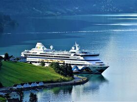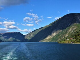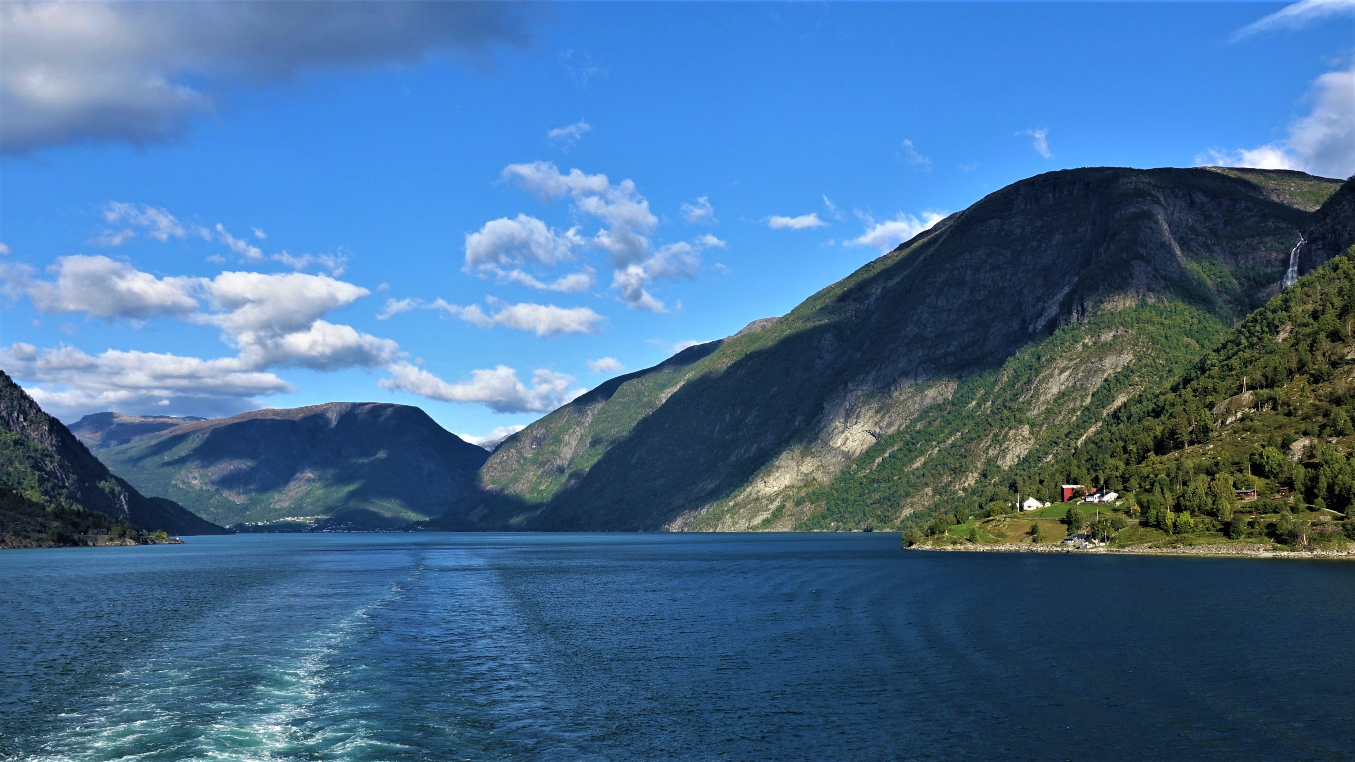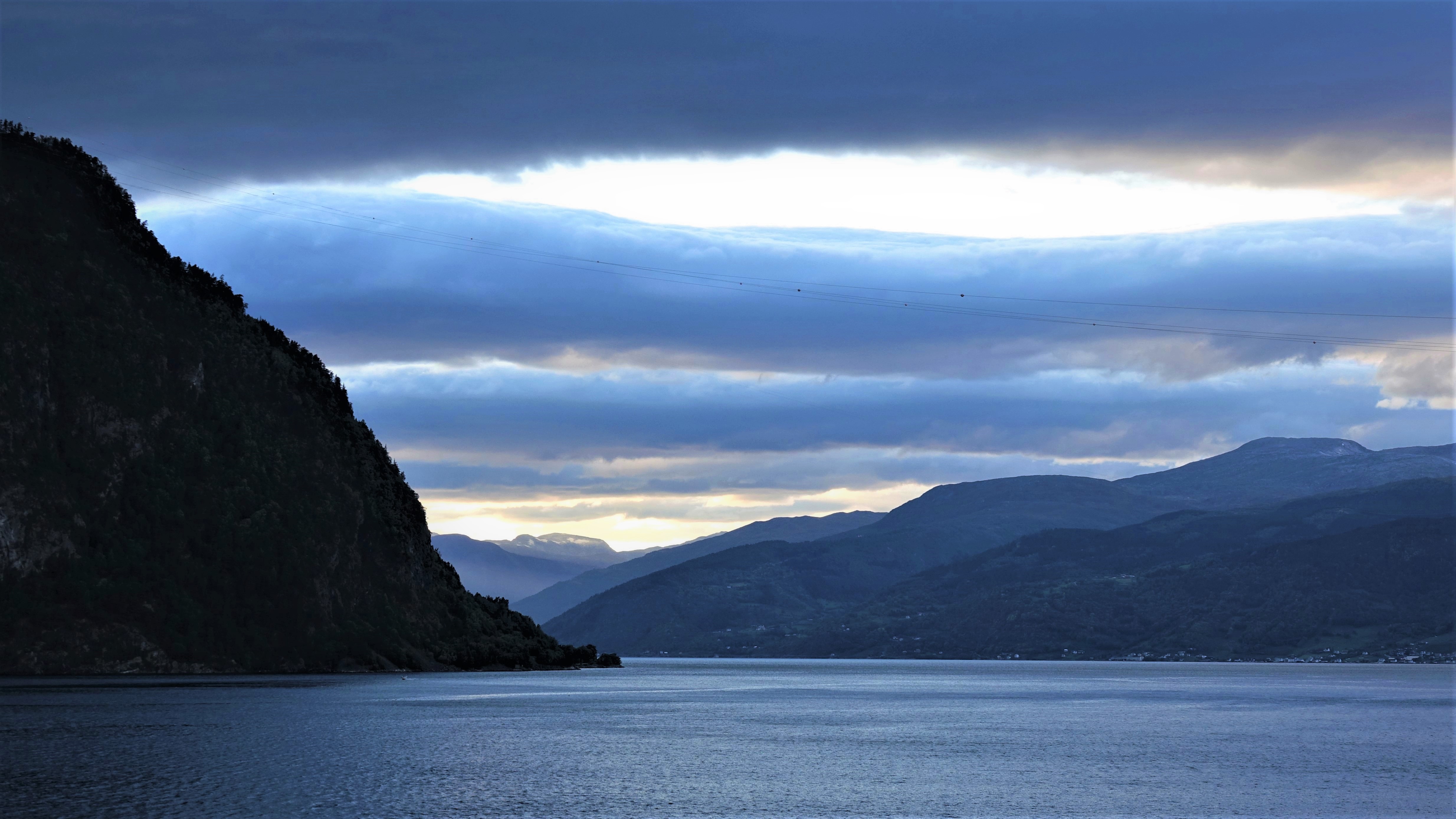 Gegen 17:00 Uhr legen wir in Skjolden ab und fahren auf dem mächtigen Sognefjord gen Westen, immer begleitet von einer Landschaft, die kein Weggucken erlaubt. Also bleibt uns nichts anderes übrig als den Abend, nur kurz von einem schnellen Abendessen unterbrochen, an der Ocean Bar zu verbringen.