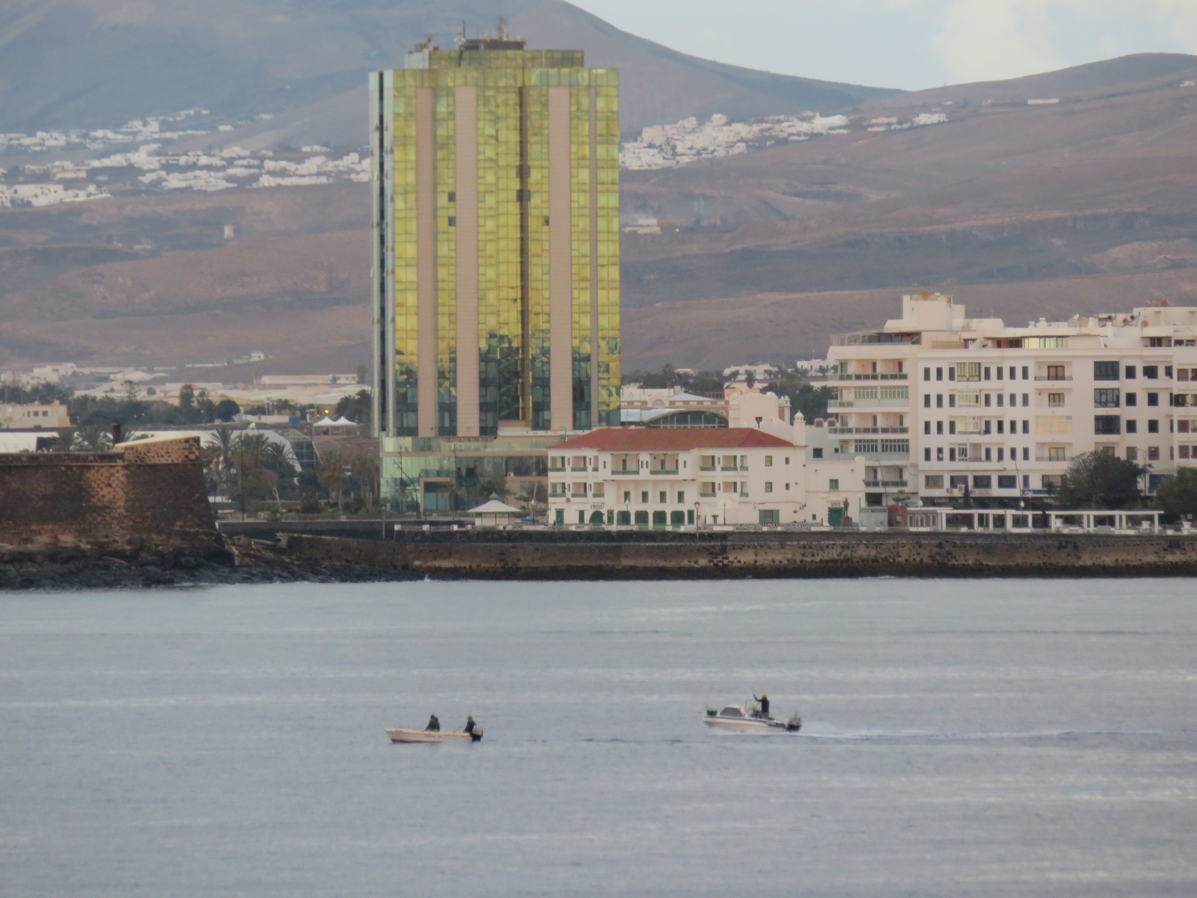 Es dauert nicht lange und eine Sünde stört diese Idylle. Genauer gesagt eine Bausünde! Und wer ist Schuld. Der Künstler Cesar Manrique, geboren 1919 in Arrecife. Wäre er 1963 nicht für 5 Jahre nach New York gegangen. hätten die, die lieber Dollars in der Hand anstatt die Schönheit der Insel am Herzen haben dieses Gebäude nicht errichten können. Nach seiner Rückkehr hat er dafür gesorgt, dass Gebäude maximal zweistöckig gebaut werden dürfen. Aber dieses war nun mal da. Glaubt man den Inselbewohnern liegt auf dem Hochhaus ein Fluch. Zweimal hat es dort schon gebrannt. Jetzt ist es ein 5-Sterne Grand Hotel.