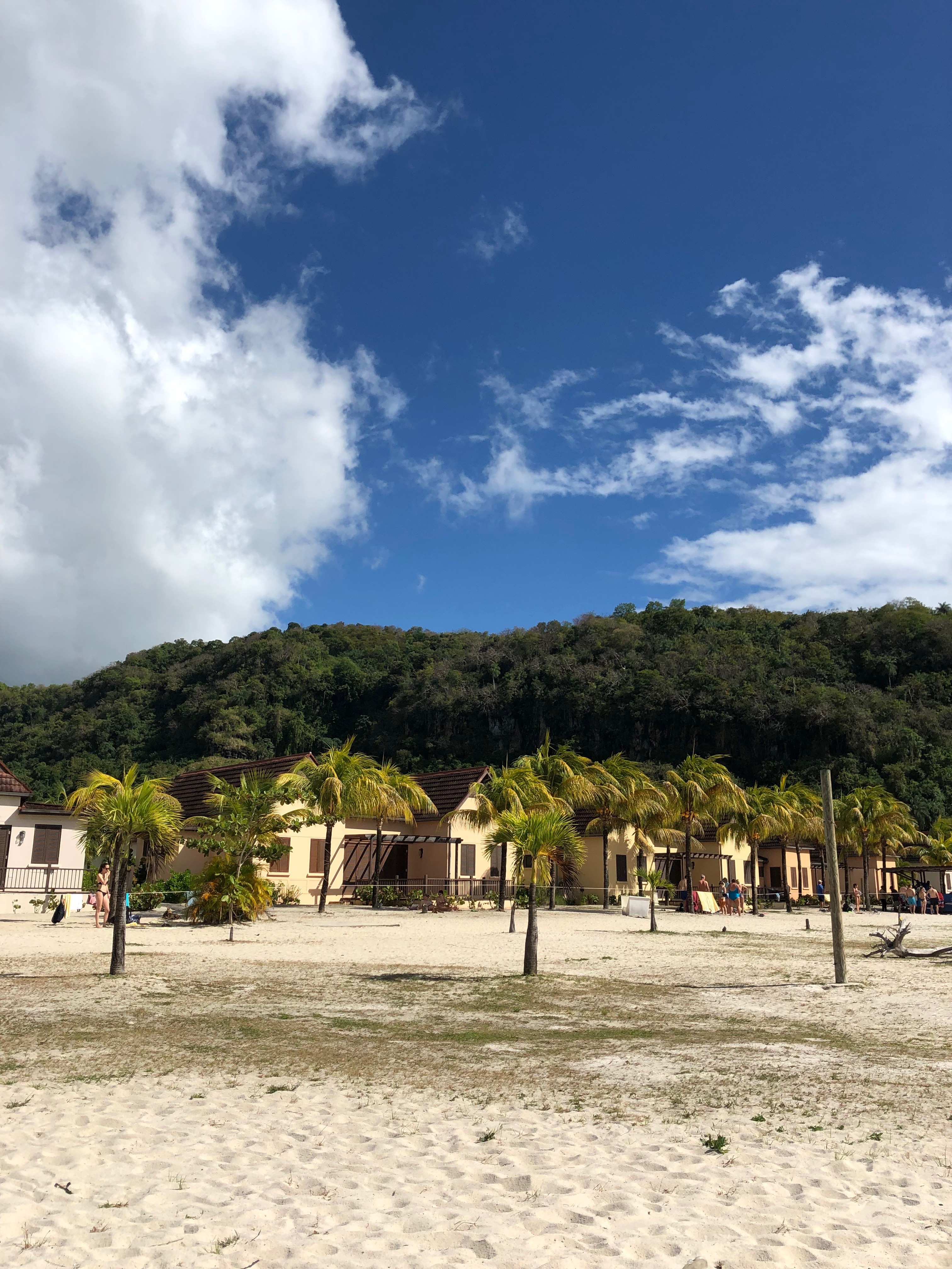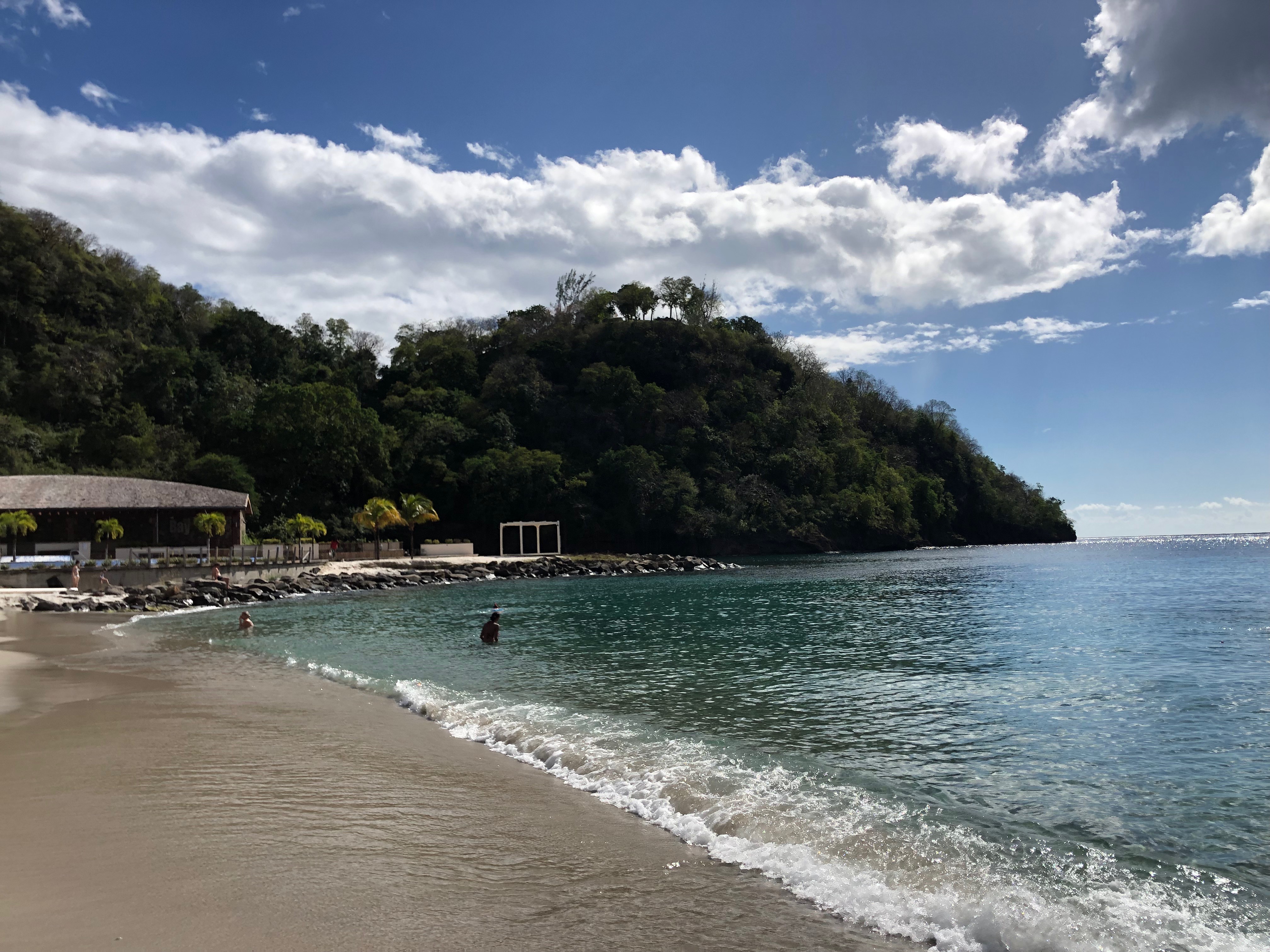 Der Strand gehörte zu einem ehemaligen Resort direkt am Wasser, welches jedoch auf Grund der schwierigen Tourismuslage auf St. Vincent und den wenigen Touristen leider nicht halten konnte. Anhand der Vielzahl der gelb-weißen Handtücher konnte man dann auch erkennen, dass sich sowohl einige individuelle Mitfahrer als auch AIDA-Ausflüge ebenfalls an diesen Strand verirrt hatten.