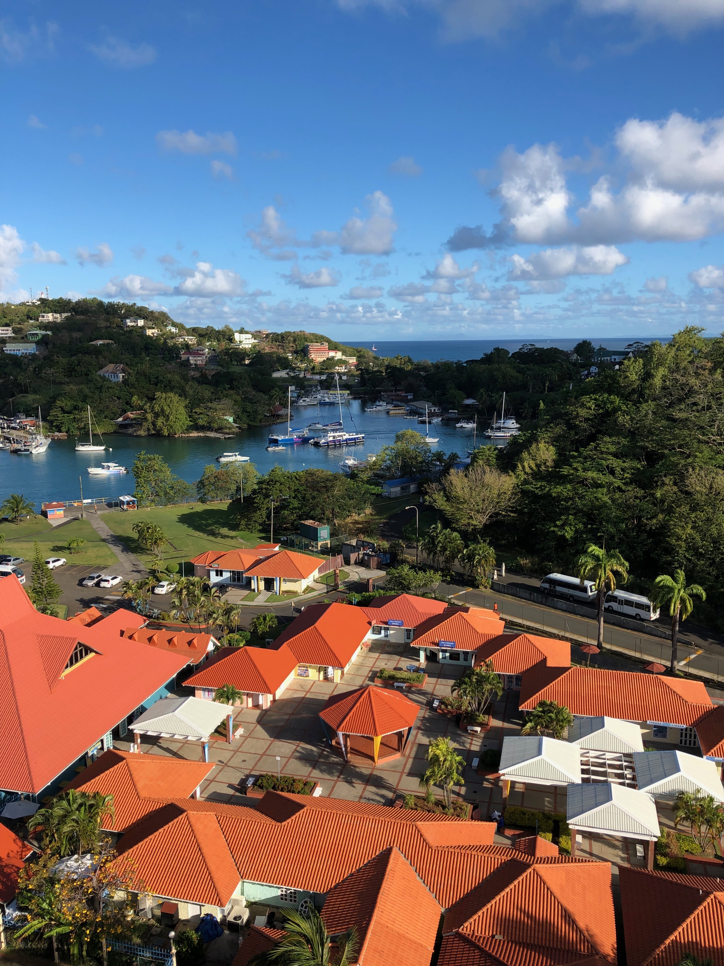 So genießen wir unser Frühstück erneut in der Sonne im Außenbereich des „Weite-Welt“-Restaurants und genießen den Blick auf die Bucht von Castries.