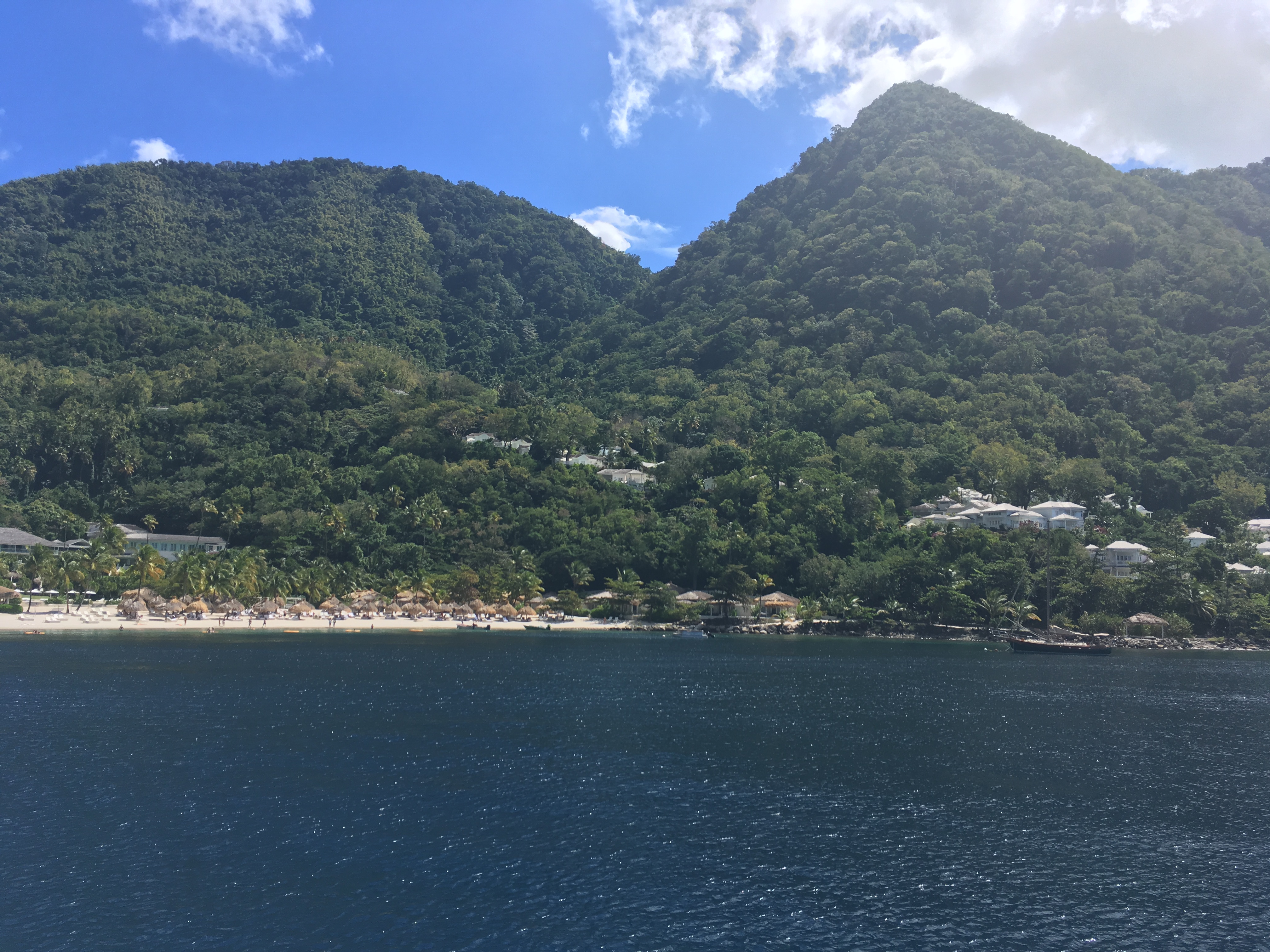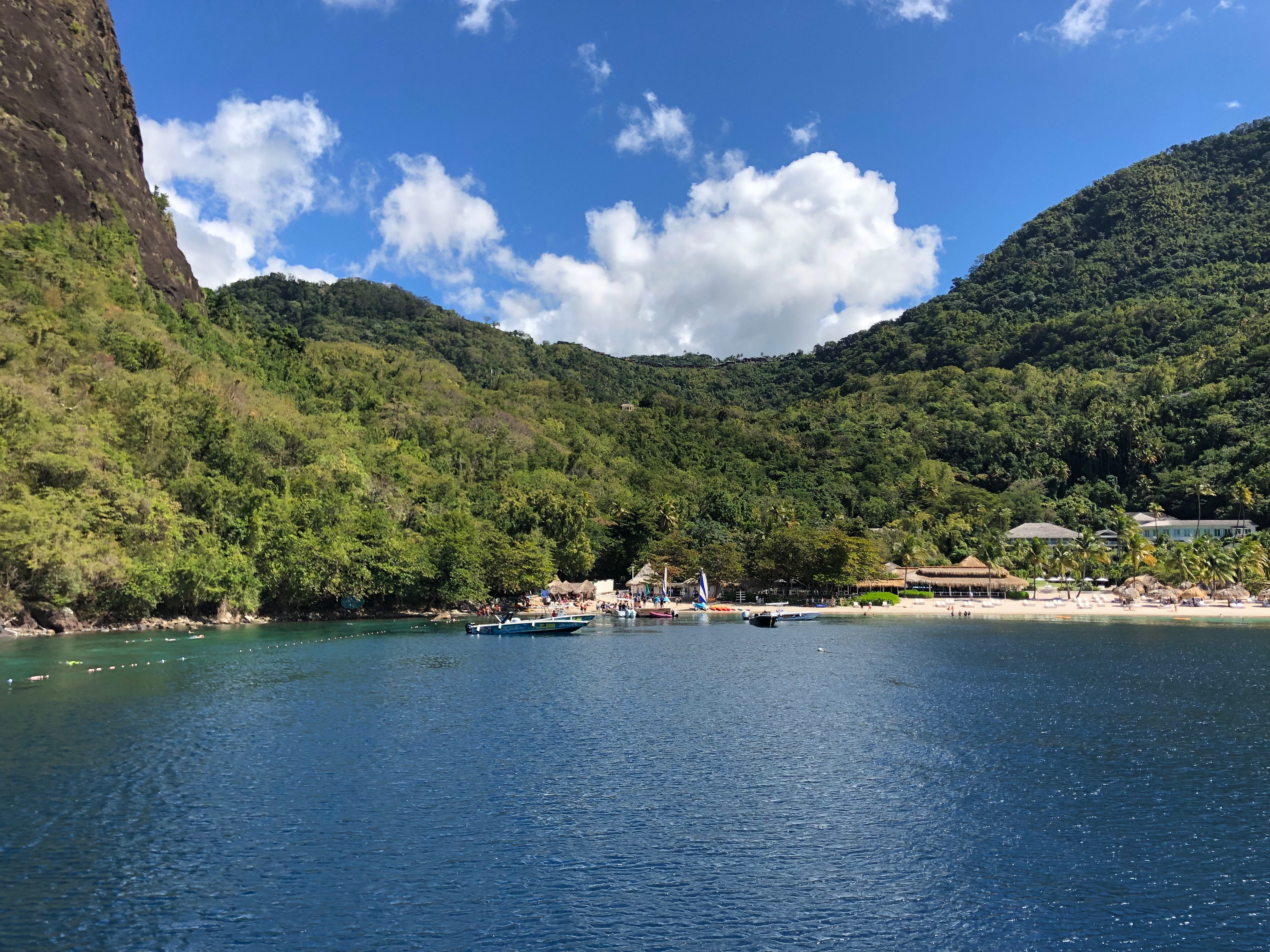 Unser Weg führt uns bis in die Soufriere Bay unterhalb des markanten Berges Petit Piton.
