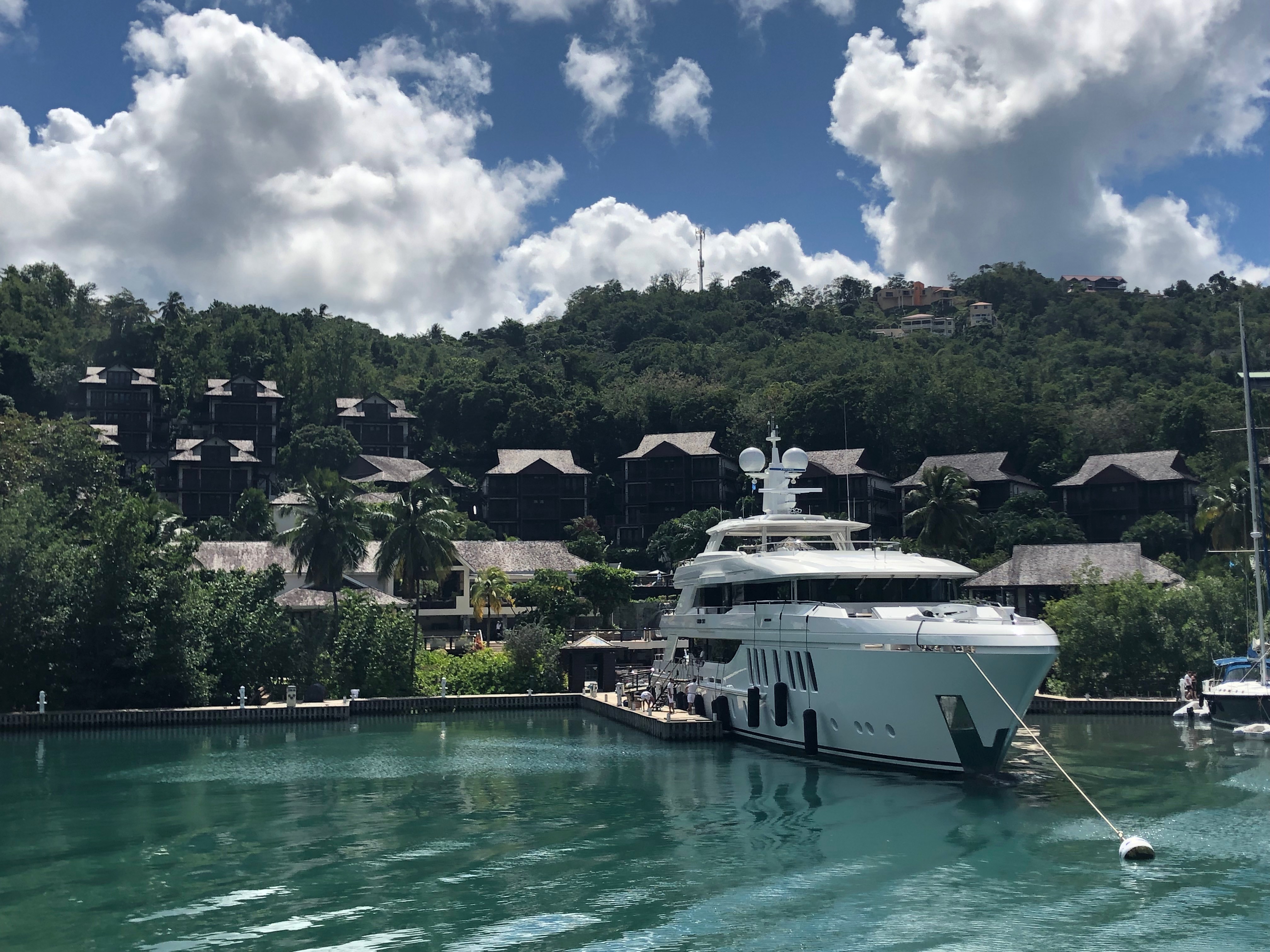 So vergeht die Zeit wie im Flug, es wird ein Rumpunsch nach dem nächsten geholt und nach einer kurzen Einfahrt in die Marigot Bay, wo man eine Menge Luxusyachten bewundern kann, sind wir auch schon wieder zurück auf dem Schiff.