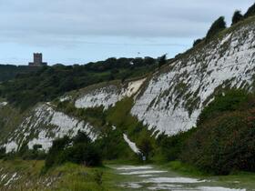 Ein schmaler, unmittelbar am Abgrund vorbeiführender Pfad. Angst? Nein – wir mussten durch. Und plötzlich setzte die Sonne Dover Castle ins richtige Licht.