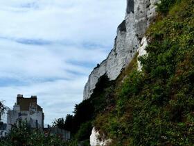 Das, was wir während der Fahrt sahen, war nicht gerade mitreißend. Ältere Häuser, von denen nicht sehr viele gepflegt aussagen. Zweckgebäude. Aber das interessierte uns nicht weiter. Wir wollten zu den Klippen. Und schon kam eine von uns zunächst zu akzeptierende Fehlinformation: Wir fragten einen Stadtpläne verteilenden Mitarbeiter des Fremdenverkehrsamtes, wo der Shuttle-Bus zum Nationalparkzentrum White Cliffs abfahren würde. Die Antwort: Dort fuhr kein Shuttle hin – die Klippen blieben nach Unglücksfällen mit Todesfolgen bis auf Weiteres gesperrt. Mist! Was nun? Ohne weitere Diskussionen fuhren wir mit dem ebenfalls kostenlosen Shuttle zum Dover Castle. Dort angekommen fiel eine auf Einlass wartende Riesenmenge ins Auge. Das bestärkte unseren bereits vorher gefassten Entschluss, auf eine Besichtigung zu verzichten. Wir wollten Natur und erhielten sie.