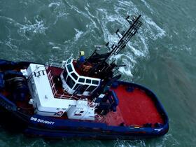 Denn sie drückten das Schiff gegen den Sturm. Und Kapitän Laudan hatte alles im Griff. Ganz langsam schob der Bug Richtung Hafenausgang,
