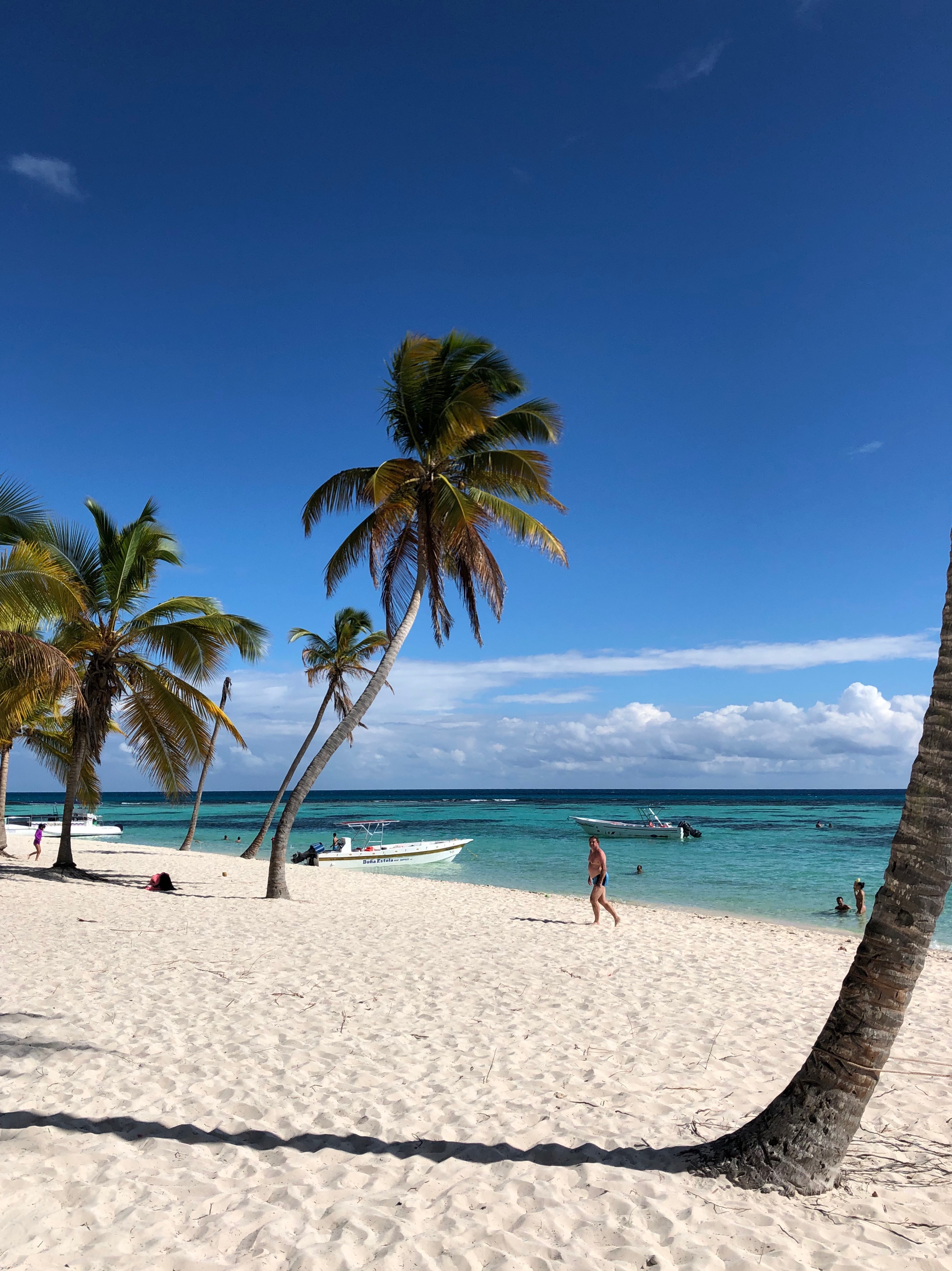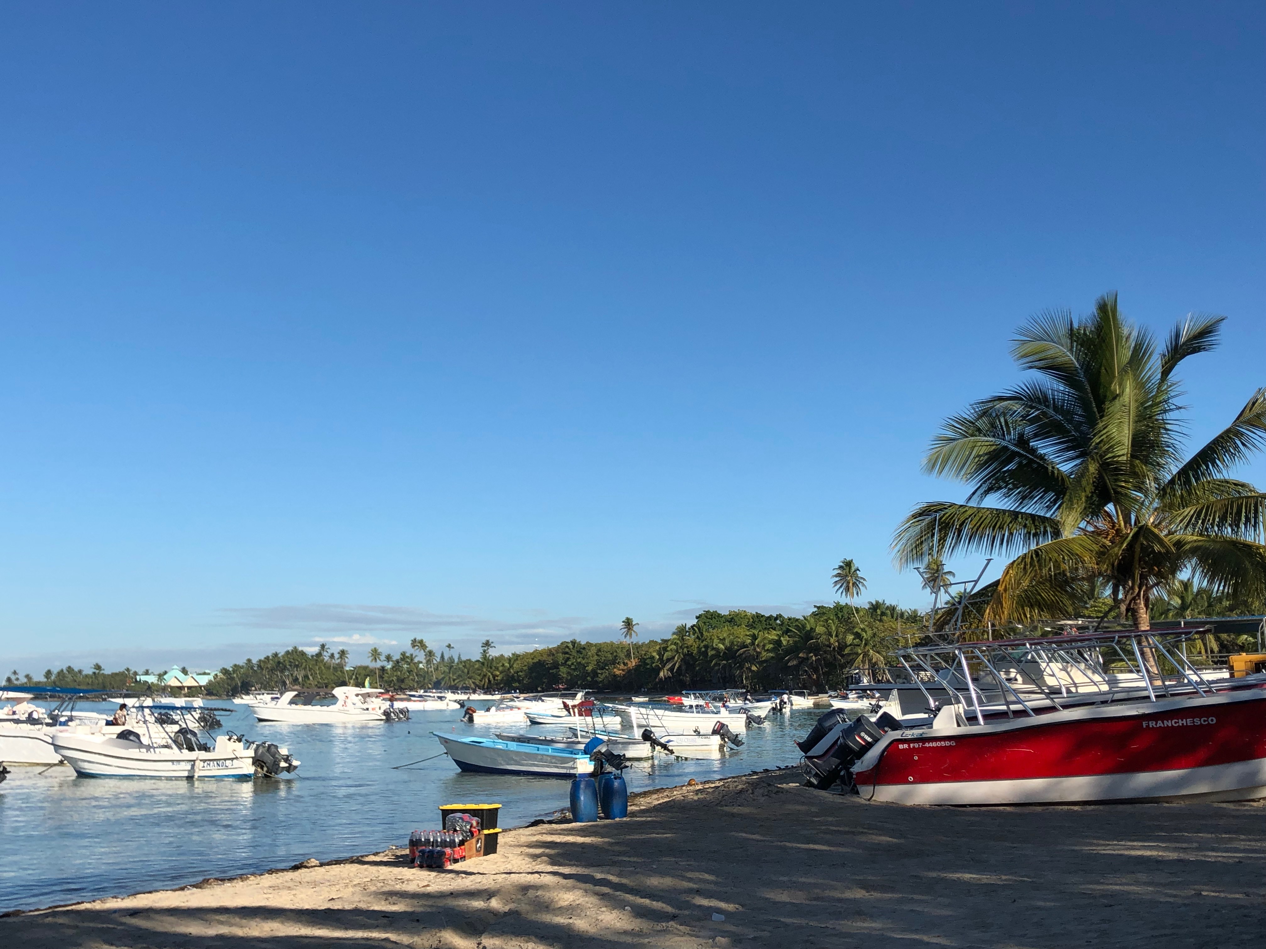 In der Bucht reiht sich ein Ausflugsboot neben dem anderen und man bekommt einen ungefähren Eindruck des riesigen Tourismusgeschäftes in der Dominikanischen Republik.