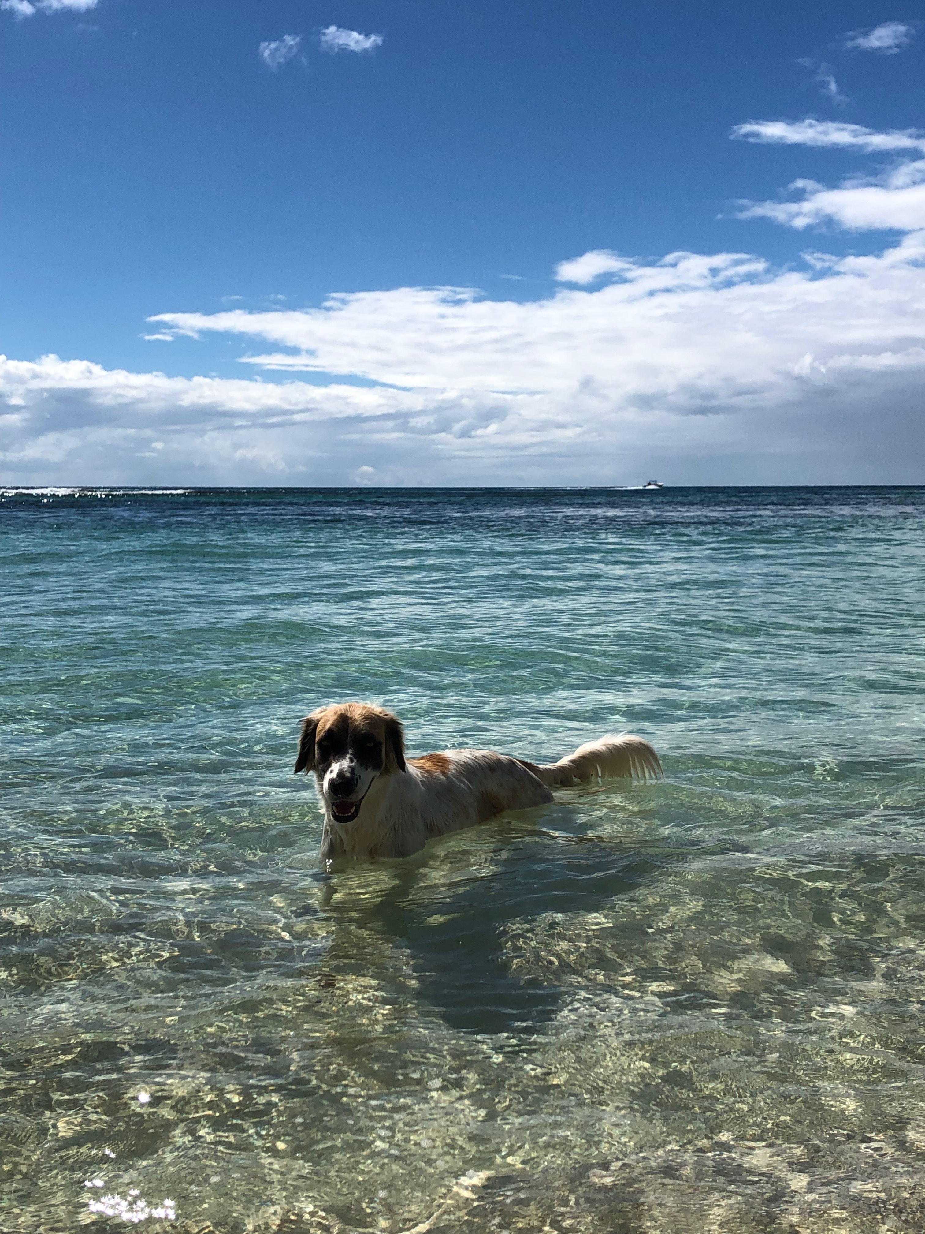 Wir spazieren ein wenig den Strand entlang, hören den Papageien in den Palmen zu und legen uns anschließend in die Sonne. Es gibt einen alten und verfallenen Bootssteg, der sich hervorragend zum Schnorcheln eignen soll, da dort eine Menge Fische Ihr zuhause gefunden haben. Bereits vom Boot aus konnte man diese beobachten. Da mittlerweile ein ordentlicher Wind aufgekommen ist und das Wasser dementsprechend aufgewühlt ist verzichten wir jedoch auf einen Schnorchelgang.