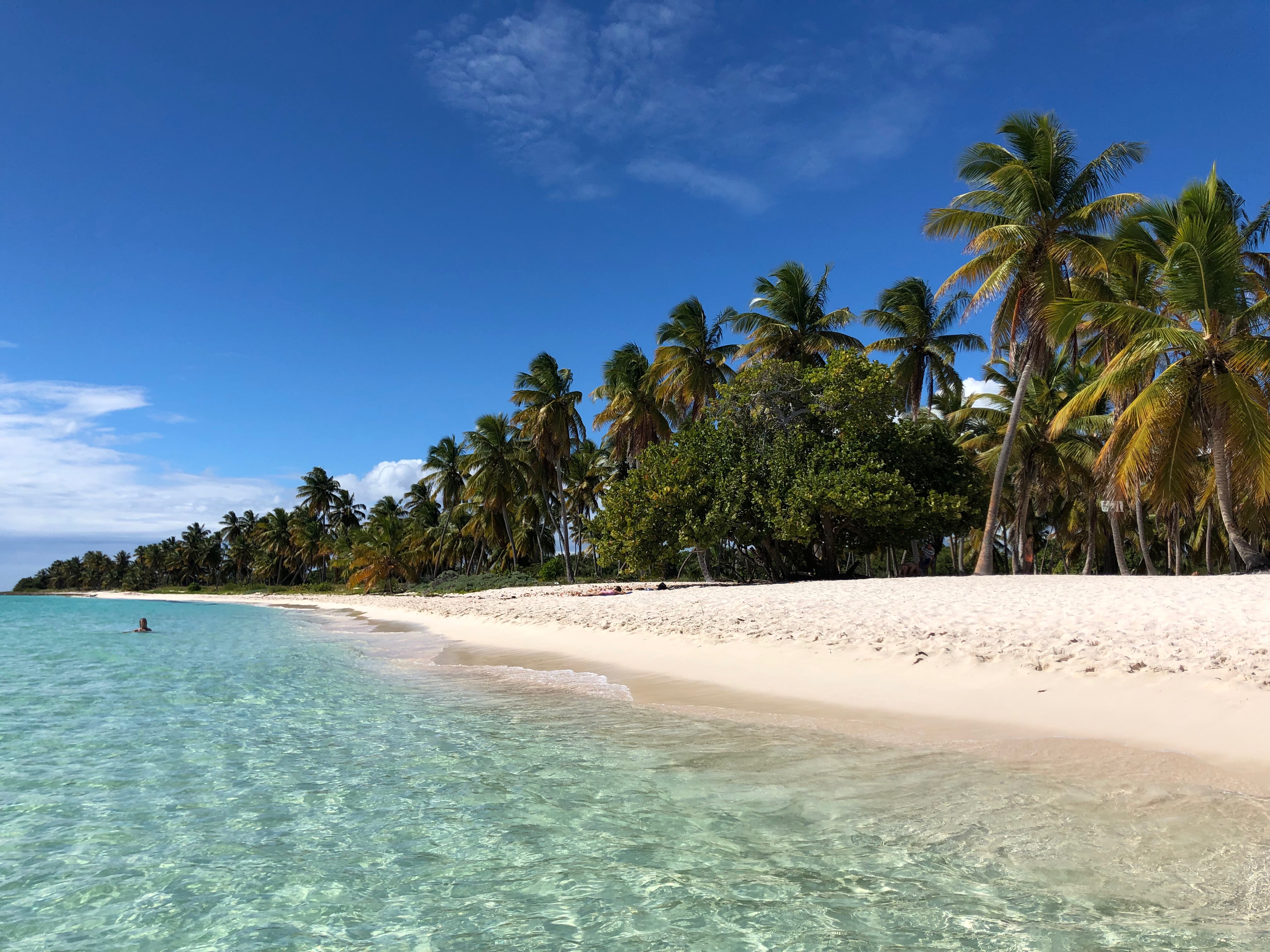 …schlussendlich halten wir am Canto de la Playa, einem absoluten Traumstrand! Hier hat man endgültig das absolute karibische Strandparadies aus seichtem, hellblauen Wasser, hellem Sandstrand und vielen Palmen.