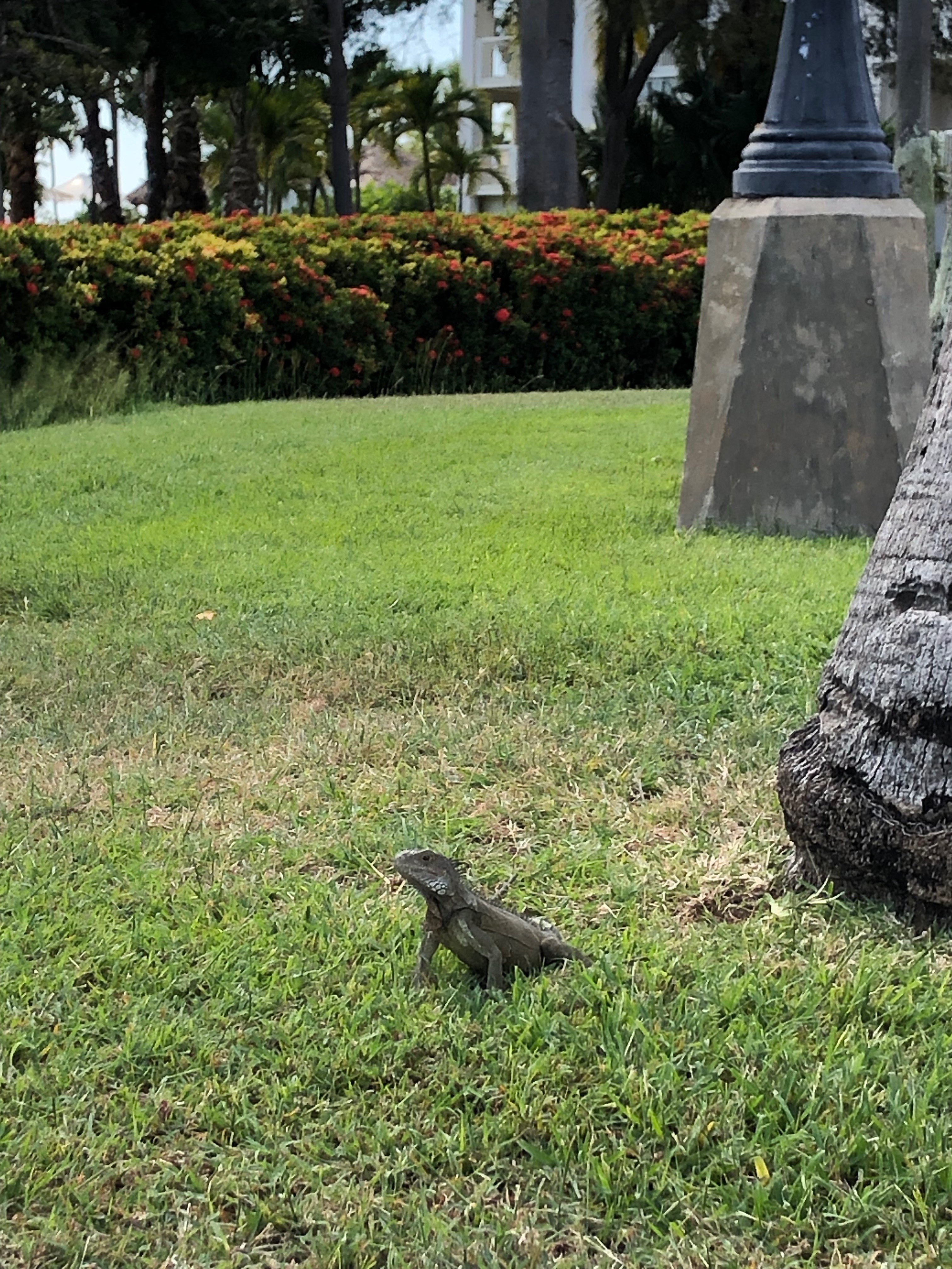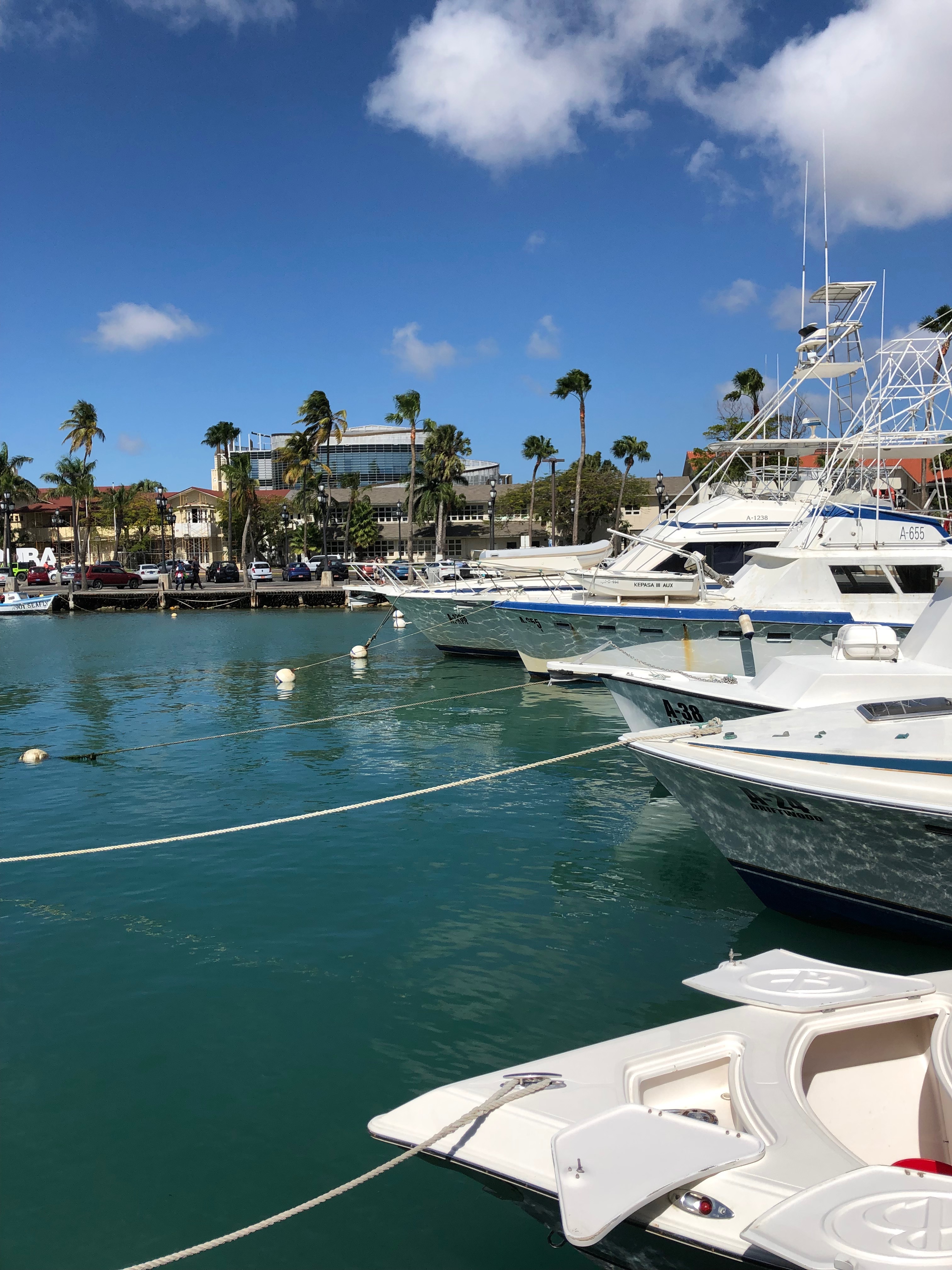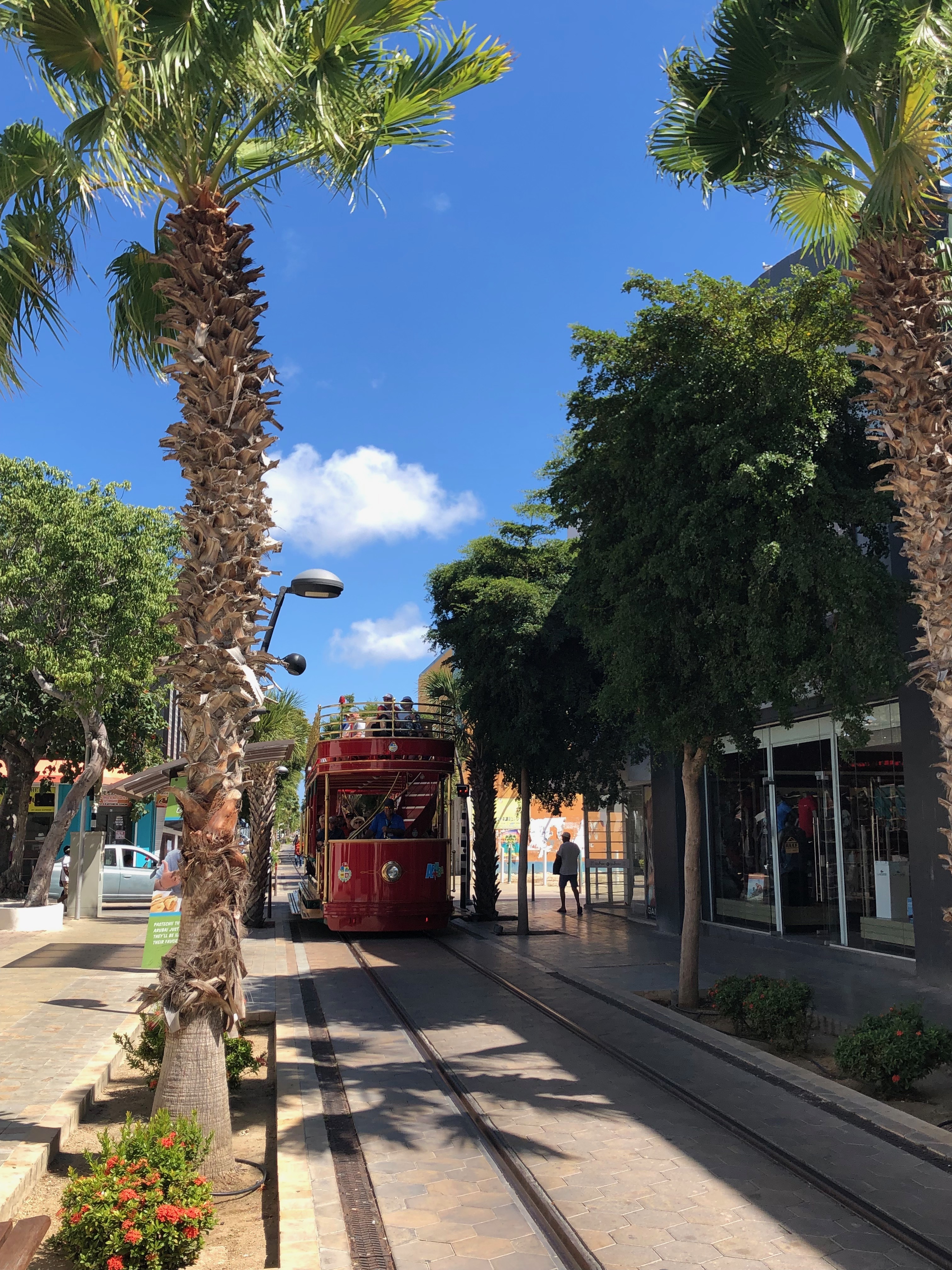 Wir schlendern durch die Einkaufsstraße Caya G.F. Betico Croes mit Ihrer berühmten Straßenbahn, schauen uns das Anne-Frank-Denkmal sowie die frei lebenden großen Leguane im Wilhelmina Park an, trinken einen Kaffee in der daneben liegenden Strandbar „The West Deck“ und schlendern zurück zum Hafen. Im Vorwege hatte ich gelesen, dass Aruba eine Art „Mallorca“ oder „Ibiza“ für die Amerikaner sein soll, und diesen Eindruck kann ich bestätigen… Es gibt ein großes Hotel mit Casino, das „Renaissance Aruba“ mit einer zugehörigen Mall, und überall in der Stadt findet man auch von uns bekanntes… Tommy Hilfiger, Boss, ein Hardrock Café McDonalds, DunkinDonut, Starbucks, ein großes Kino und so weiter und so fort. Vielfach weht die niederländische Fahne, was vor den angepflanzten Palmen einfach sehr fehl am Platz ausschaut, und insgesamt wirkt Oranjestad größtenteils sehr ordentlich und gepflegt. Halt ganz anders als die bisherigen Inseln…