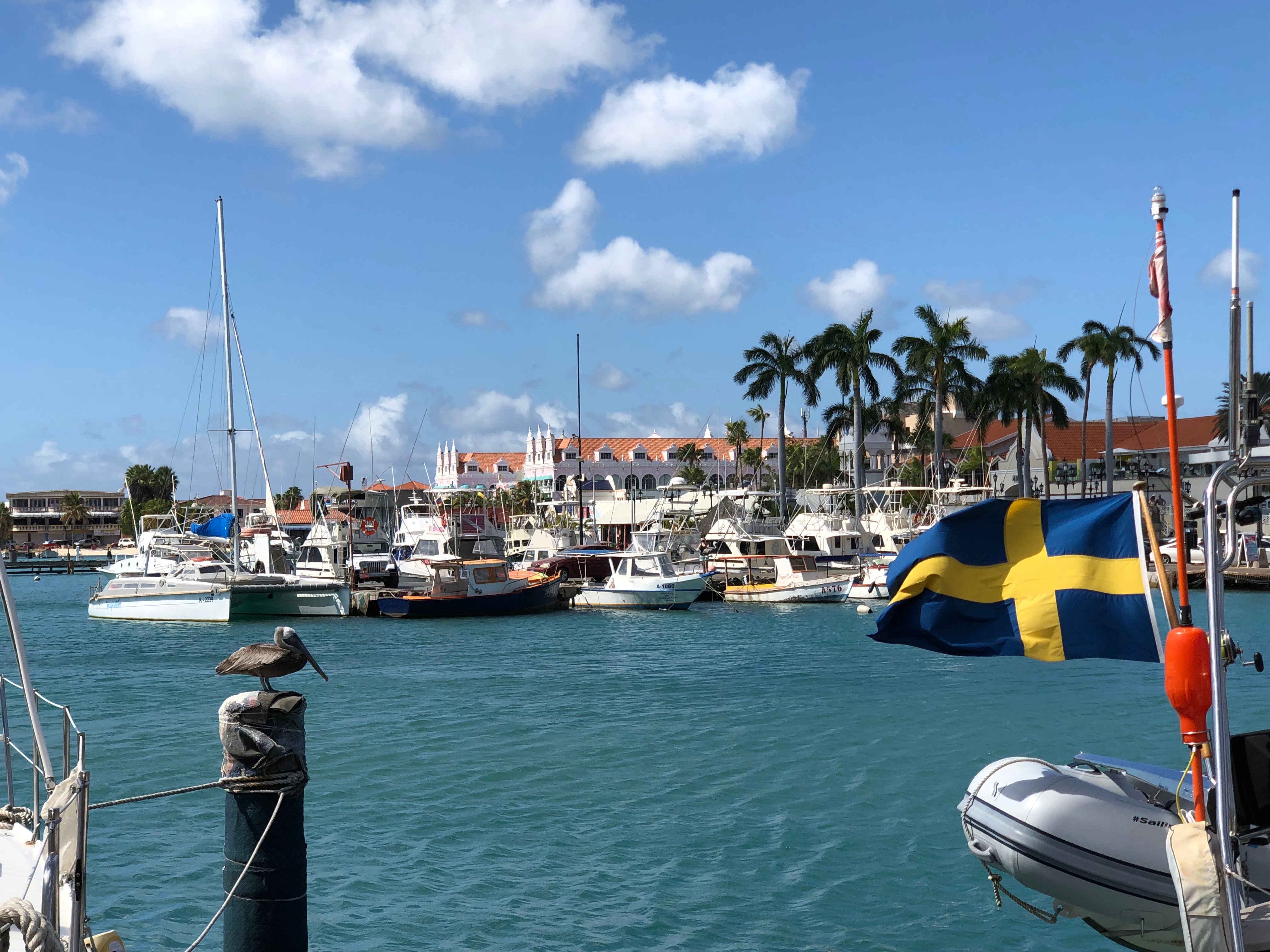 Wir schlendern durch die Einkaufsstraße Caya G.F. Betico Croes mit Ihrer berühmten Straßenbahn, schauen uns das Anne-Frank-Denkmal sowie die frei lebenden großen Leguane im Wilhelmina Park an, trinken einen Kaffee in der daneben liegenden Strandbar „The West Deck“ und schlendern zurück zum Hafen. Im Vorwege hatte ich gelesen, dass Aruba eine Art „Mallorca“ oder „Ibiza“ für die Amerikaner sein soll, und diesen Eindruck kann ich bestätigen… Es gibt ein großes Hotel mit Casino, das „Renaissance Aruba“ mit einer zugehörigen Mall, und überall in der Stadt findet man auch von uns bekanntes… Tommy Hilfiger, Boss, ein Hardrock Café McDonalds, DunkinDonut, Starbucks, ein großes Kino und so weiter und so fort. Vielfach weht die niederländische Fahne, was vor den angepflanzten Palmen einfach sehr fehl am Platz ausschaut, und insgesamt wirkt Oranjestad größtenteils sehr ordentlich und gepflegt. Halt ganz anders als die bisherigen Inseln…