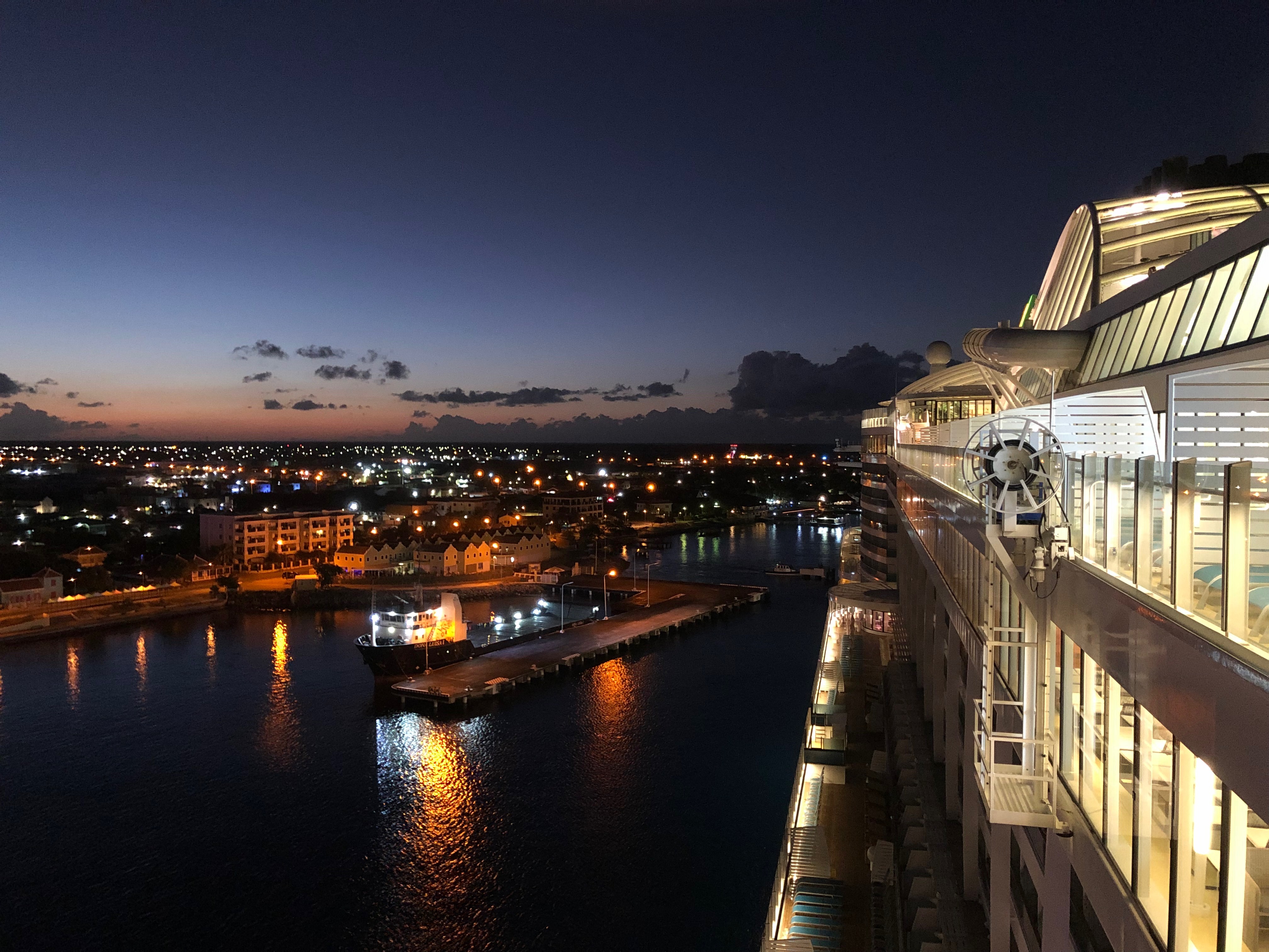Ganz früh morgens stehen wir mit unserem Kaffee auf dem Skywalk auf Deck 15. Es ist noch dunkel und wir erfreuen uns an der beleuchteten Silhouette von AIDAperla, wie wir uns langsam auf Kralendijk, die Haupt“stadt“ von Bonaire, zubewegen. Schon im Dunkeln lässt sich erahnen, dass Bonaire, wenn auch ebenfalls zu den niederländischen Antillen und damit den Niederlanden gehörend, ganz anders daherkommen wird als Aruba. Hohe Gebäude, Leuchtreklame oder ein Casino sucht man in Kralendijk vergeblich. Von unserer hohen Position haben wir einen tollen Blick…