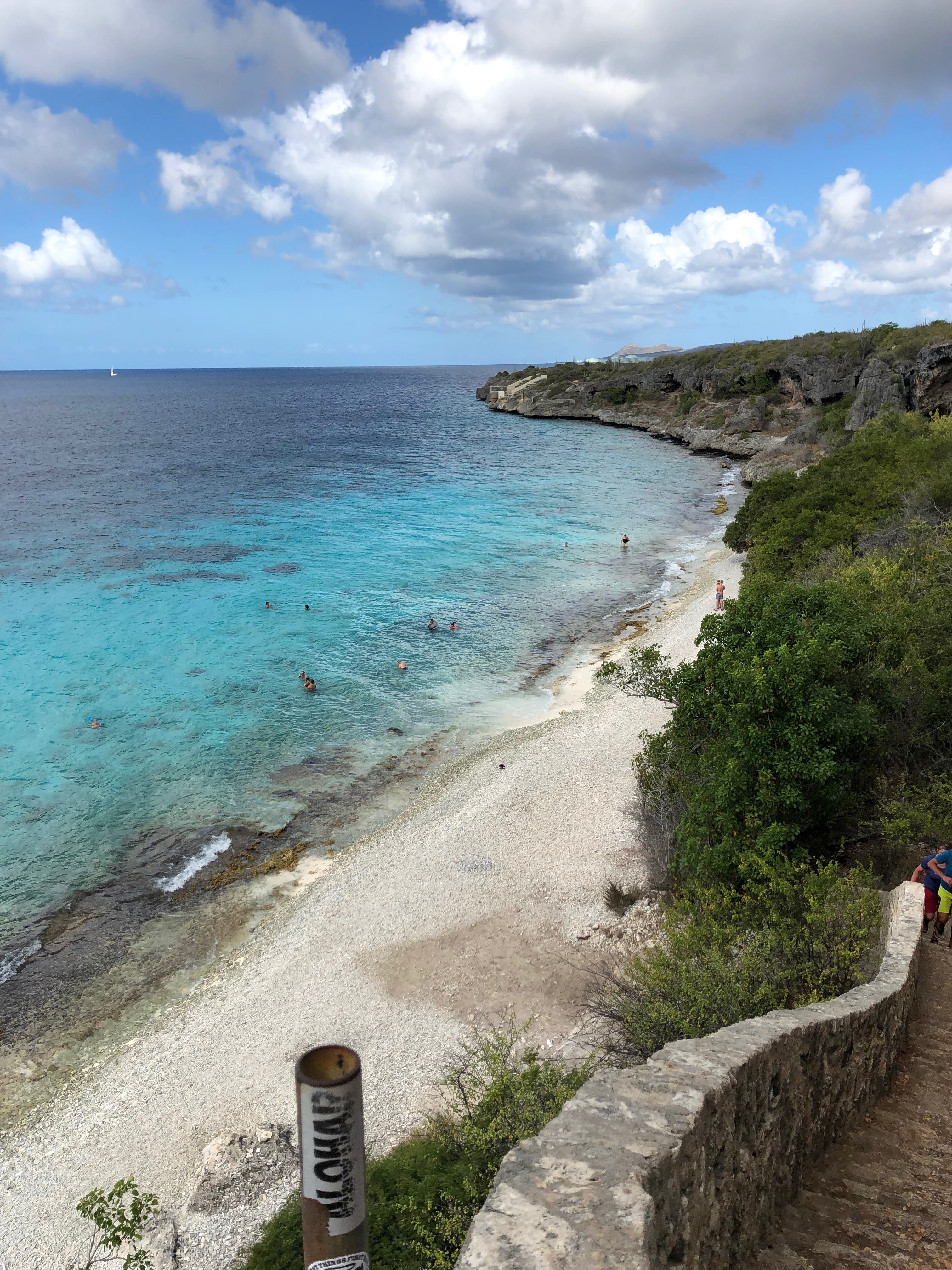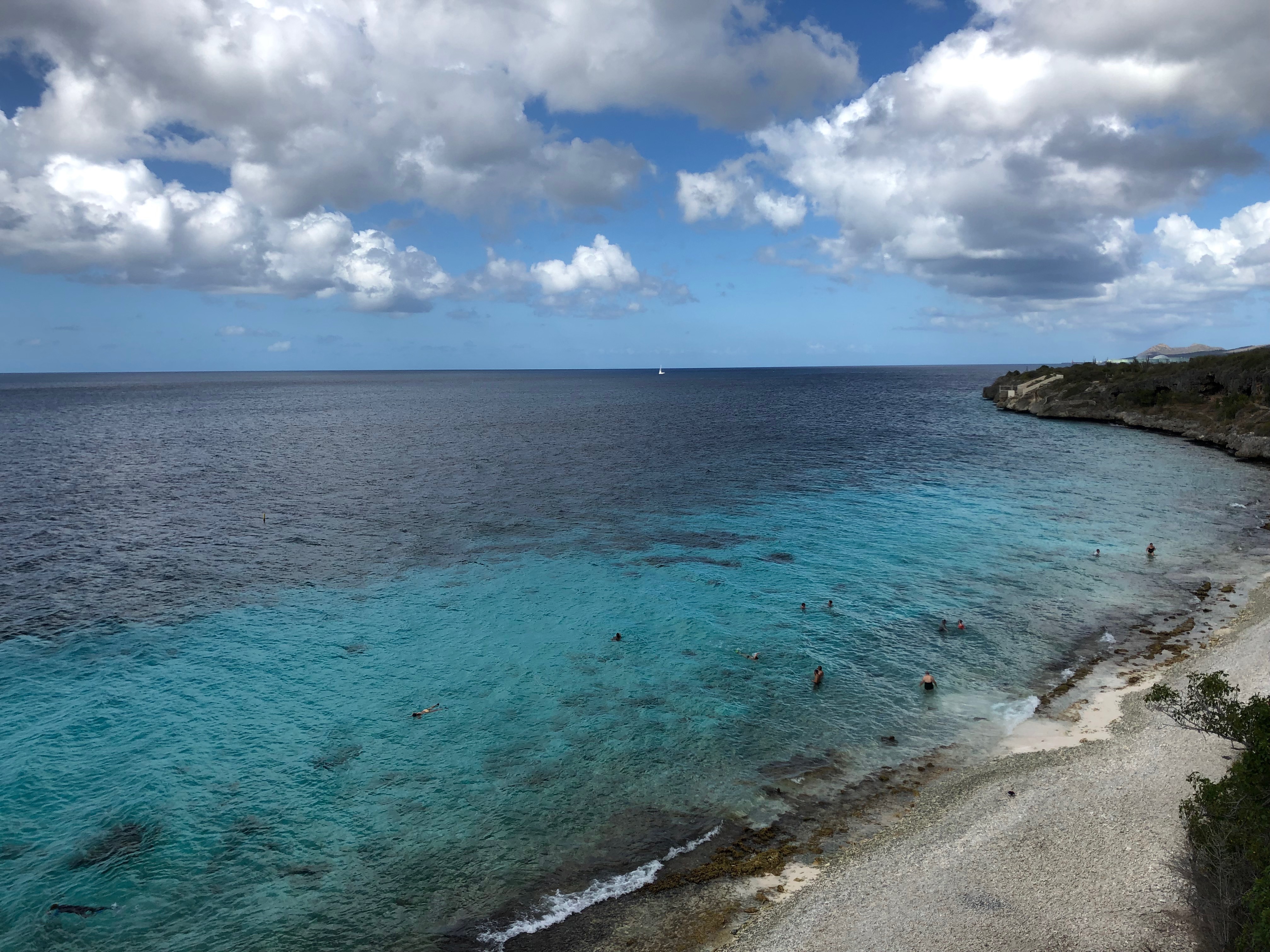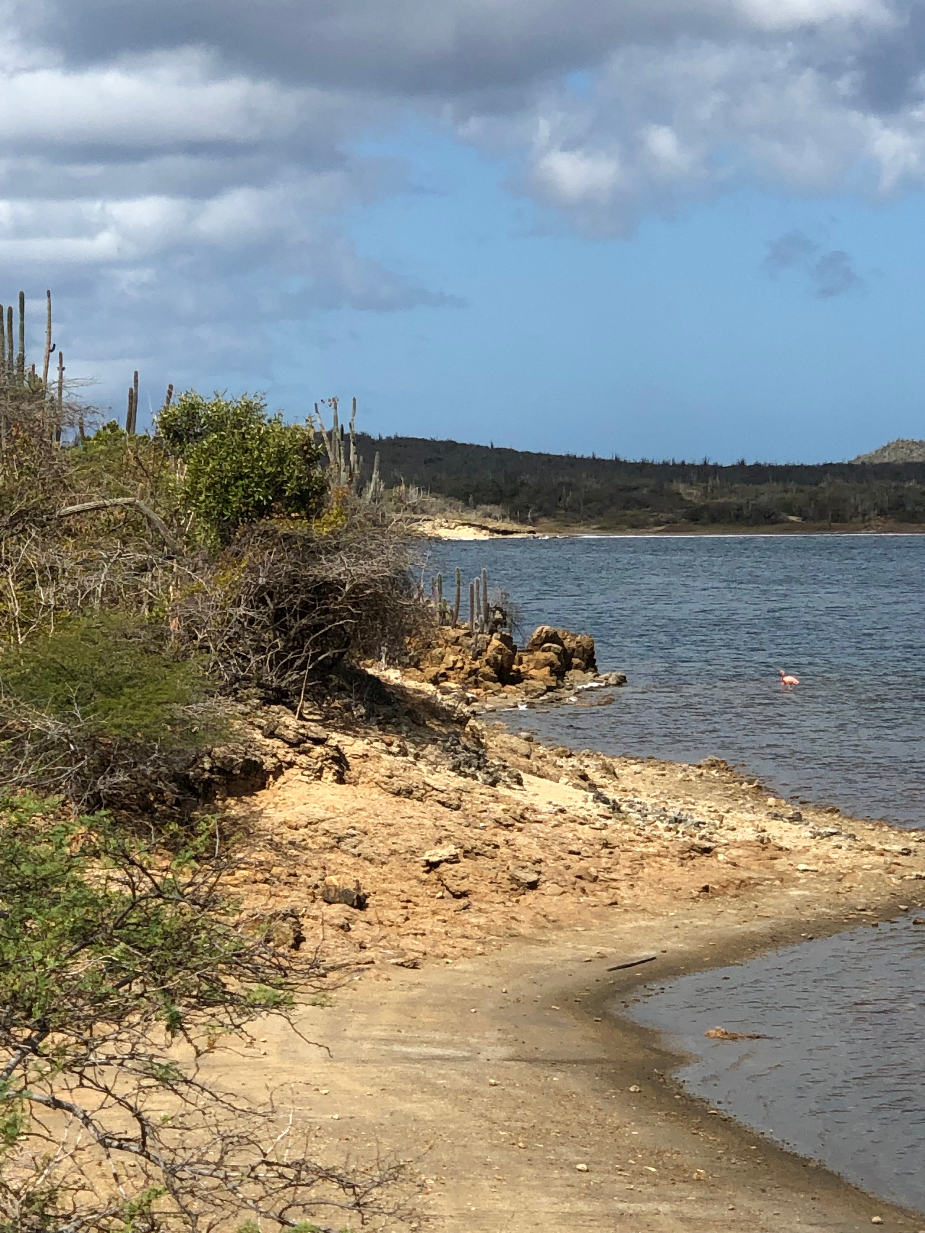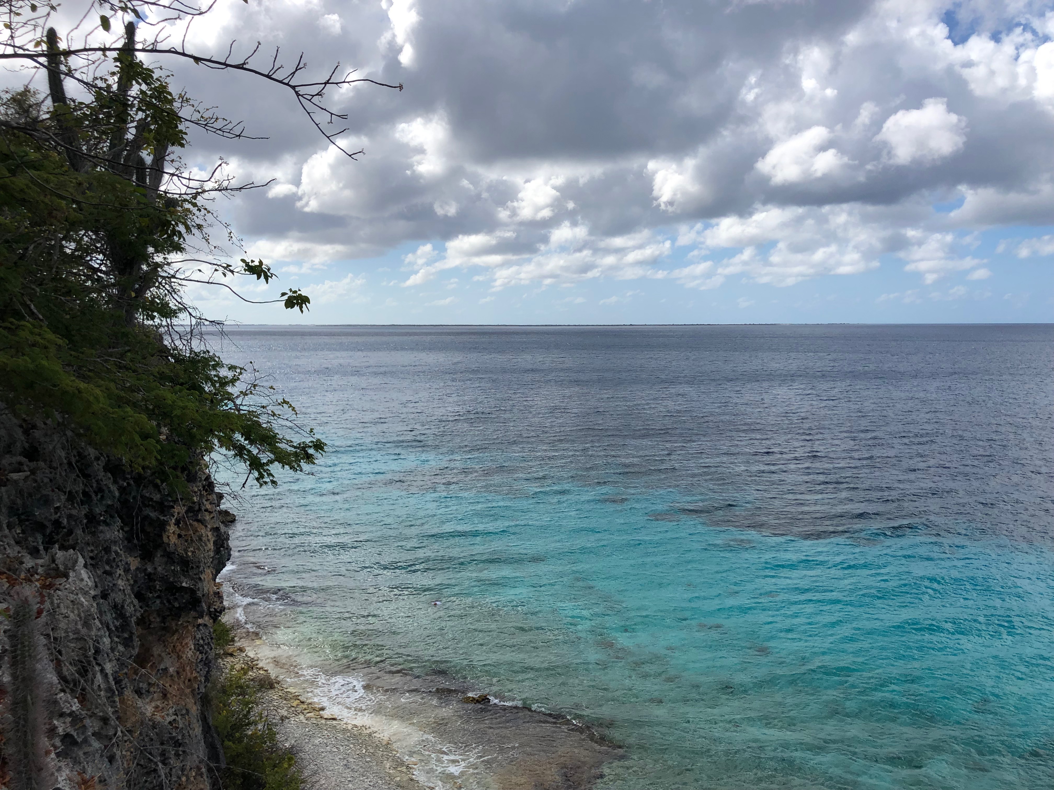 Was für ein Ausblick! Links das Meer, rechts die karge, trockene und felsige Landschaft, welche von grünen Sträuchern bewachsen trotzdem eine ganz eigene Schönheit hat! Es ist wirklich faszinierend, wie unterschiedlich die doch so nah beieinander liegenden ABC-Inseln sind.