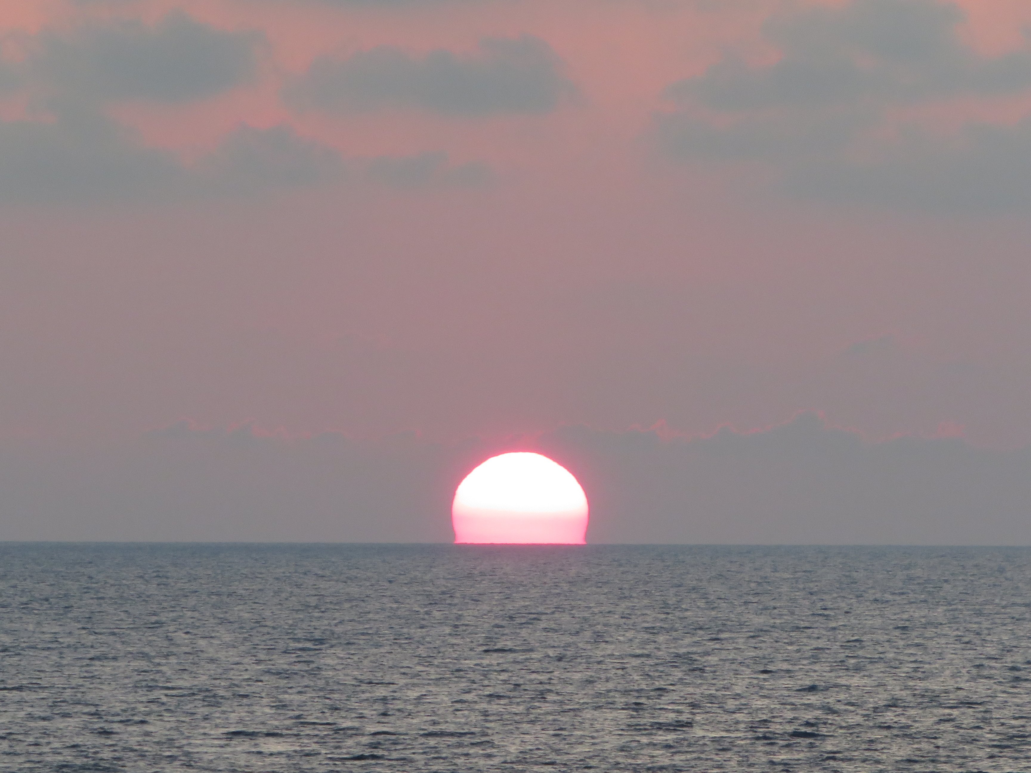 Wir dümpeln langsam über den Ententeich und die Wellen plätschern sanft gegen die Bordwand. Der Tag beginnt mit einem wunderschönen Sonnenaufgang.