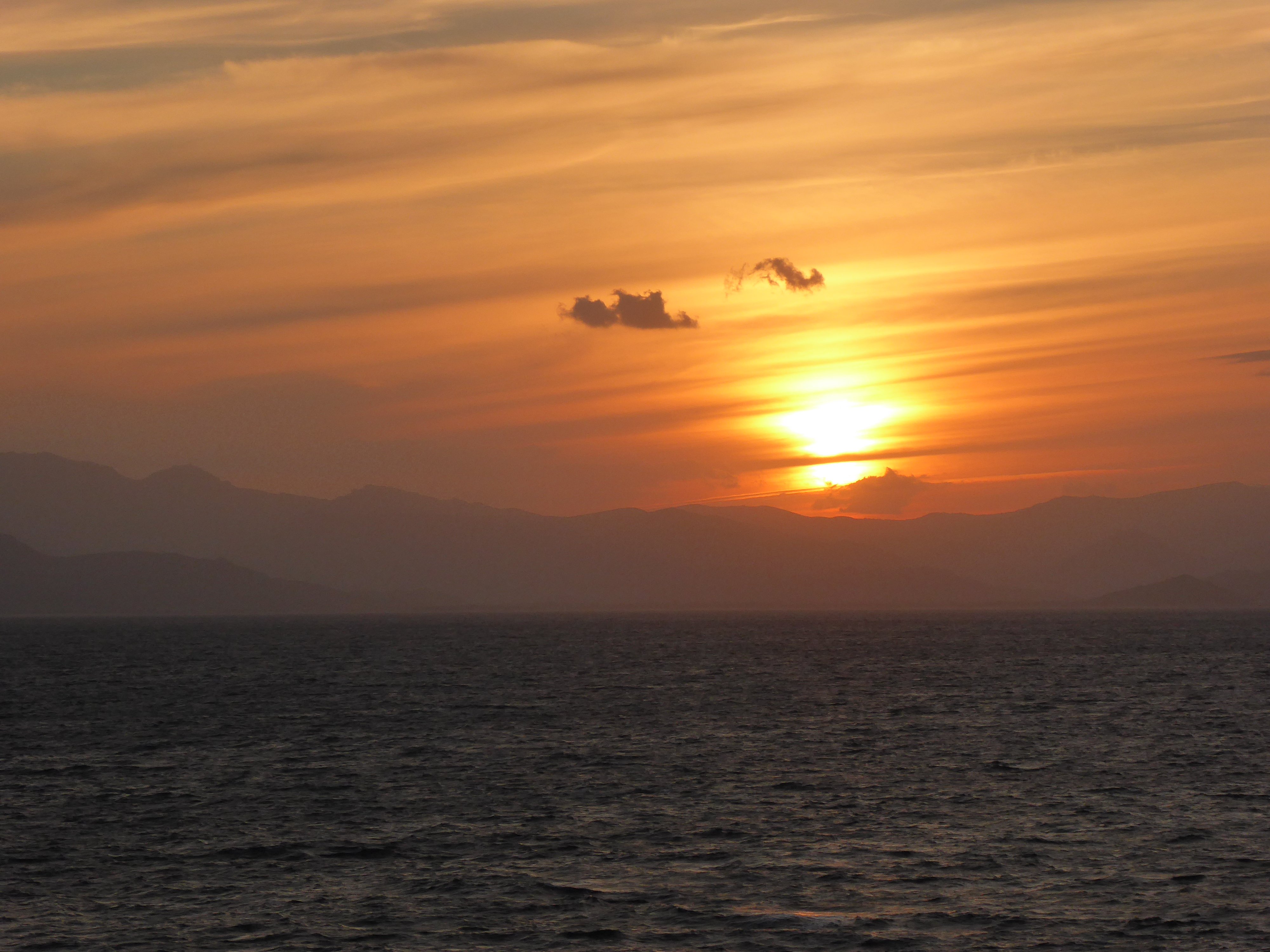 Wir fahren zu dieser Zeit schon einen großen Umweg. Anstatt Ajaccio von Mallorca aus direkt anzusteuern machten wir einen Bogen und fahren an der Ostküste Sardiniens entlang. Ob wir auf der ursprünglich geplanten Route auch so einen schönen Sonnenuntergang gesehen hätten?