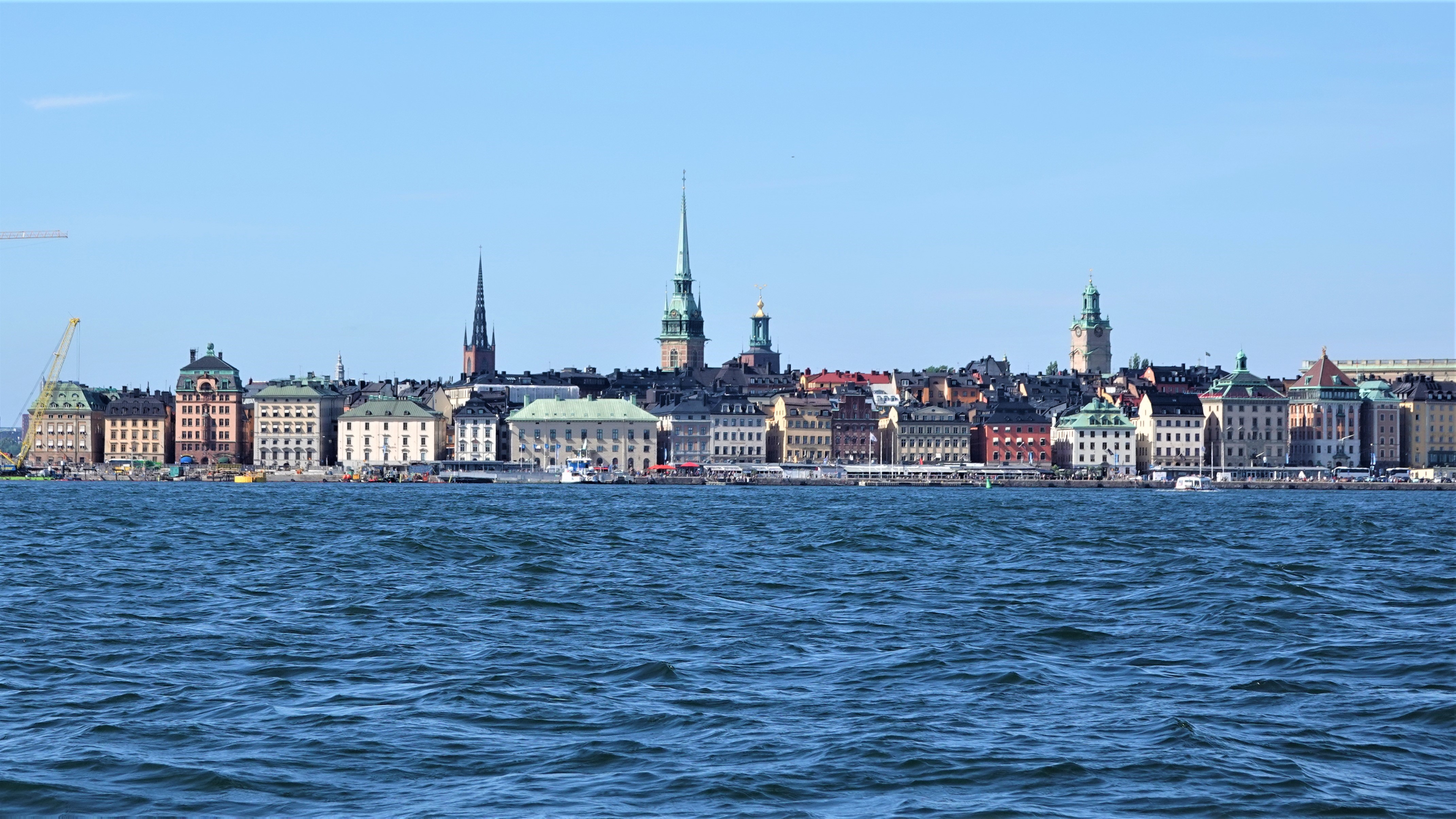 Als Erstes hält das Boot auf die Altstadt „Gamla Stan“ zu. Da wir vermuten, dass es heute am Sonntag hier von Touristen nur so wimmeln wird, verschieben wir den Besuch auf morgen. So schauen wir uns die Uferstraße „Skeppsbron“ lediglich von der Wasserseite an.