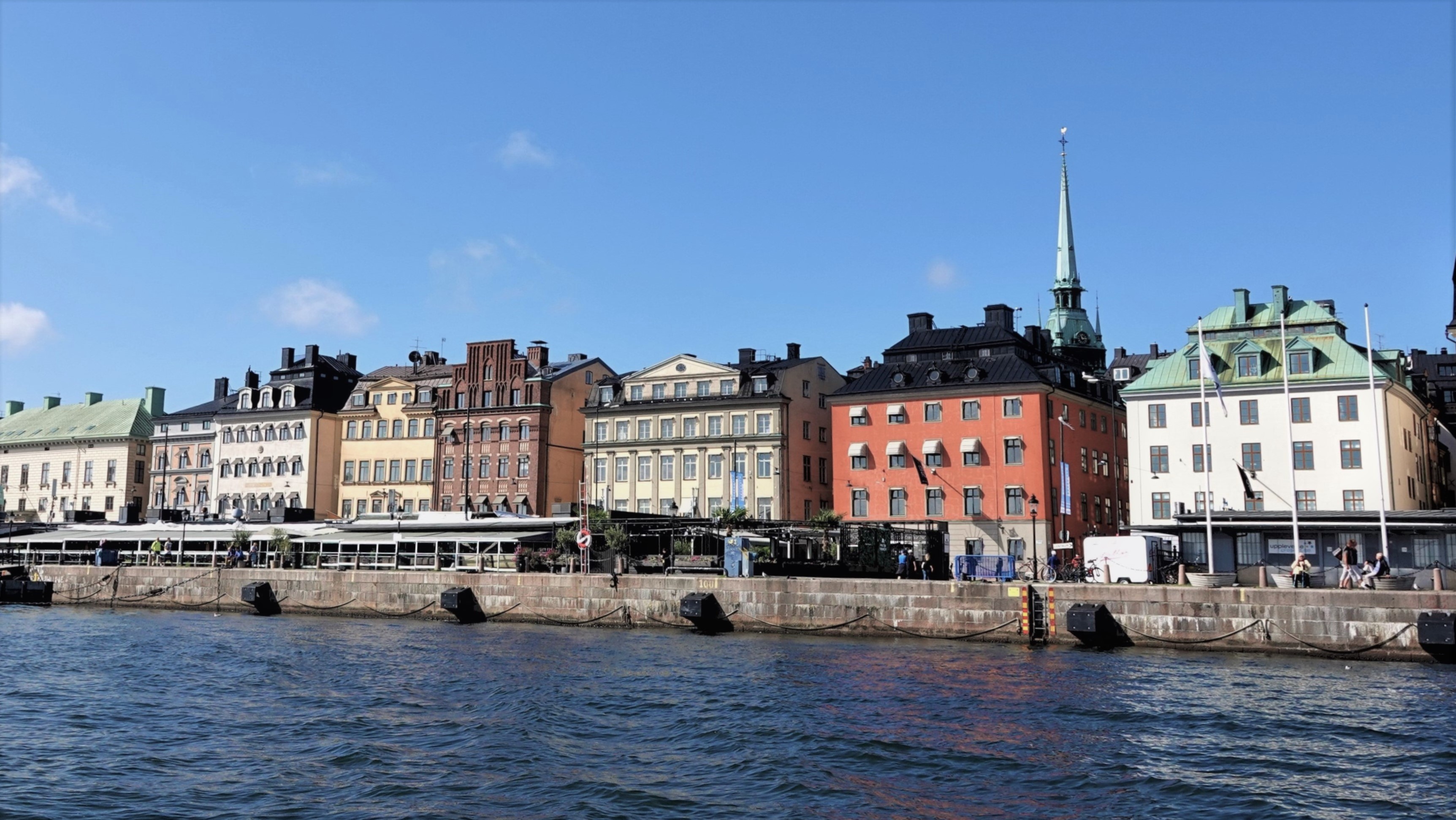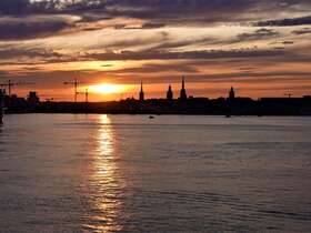 Eigentlich hatten wir uns mit unseren Freunden zu einem abendlichen Essensausflug nach Gamla Stan verabredet. Da aber sowohl die Busse als auch die Boote nur bis 18:00 Uhr fahren, verwerfen wir diese Idee, ob des langen Fußmarsches entlang der Baustelle zurück zum Schiff. Also geht’s ins „Calypso“. Anschließend verbringen wir unseren Abend in der „Ocean Bar“ mit der wunderbaren Aussicht auf die Altstadt von Stockholm.