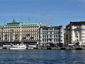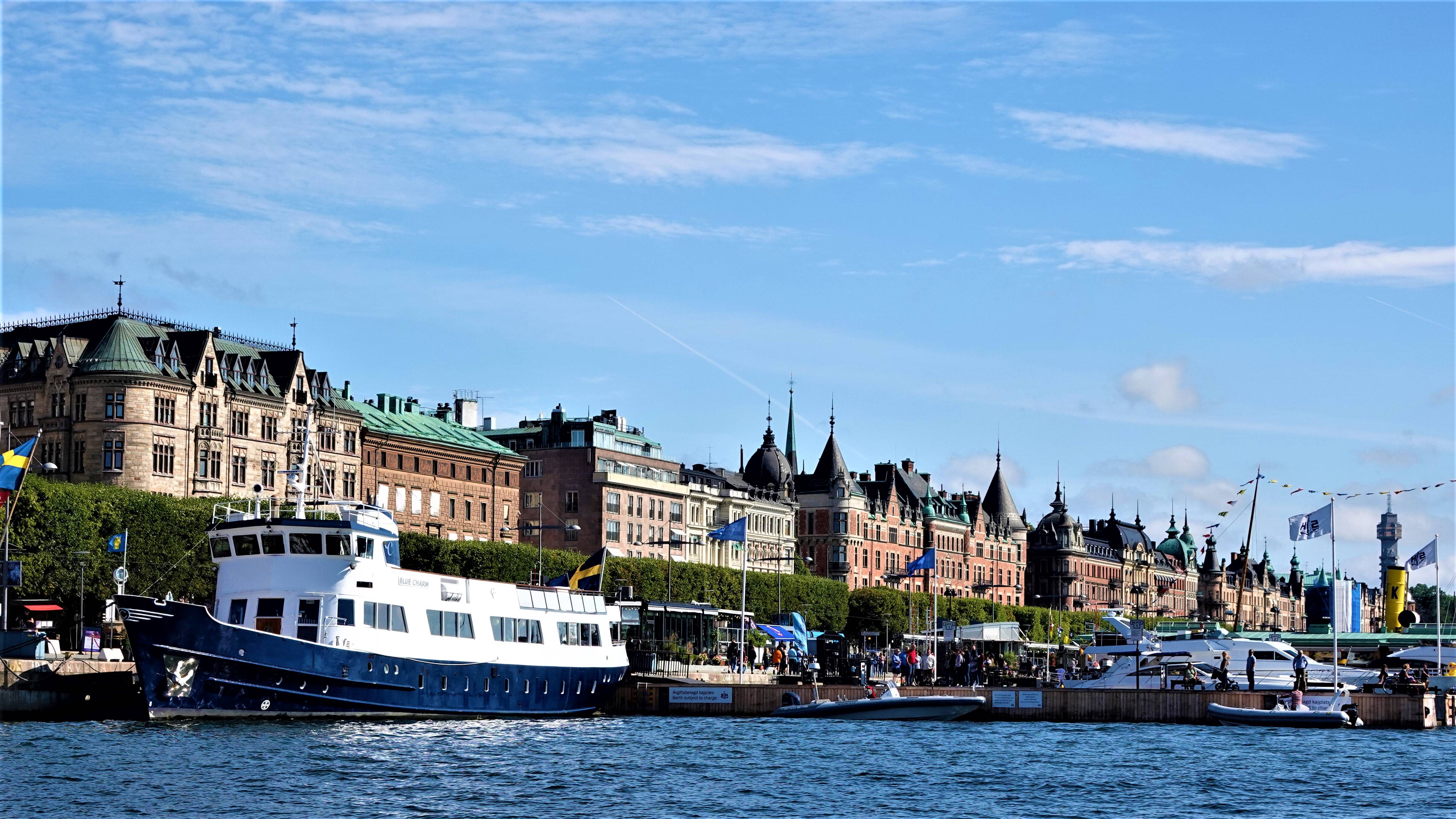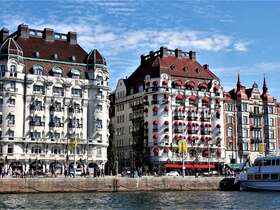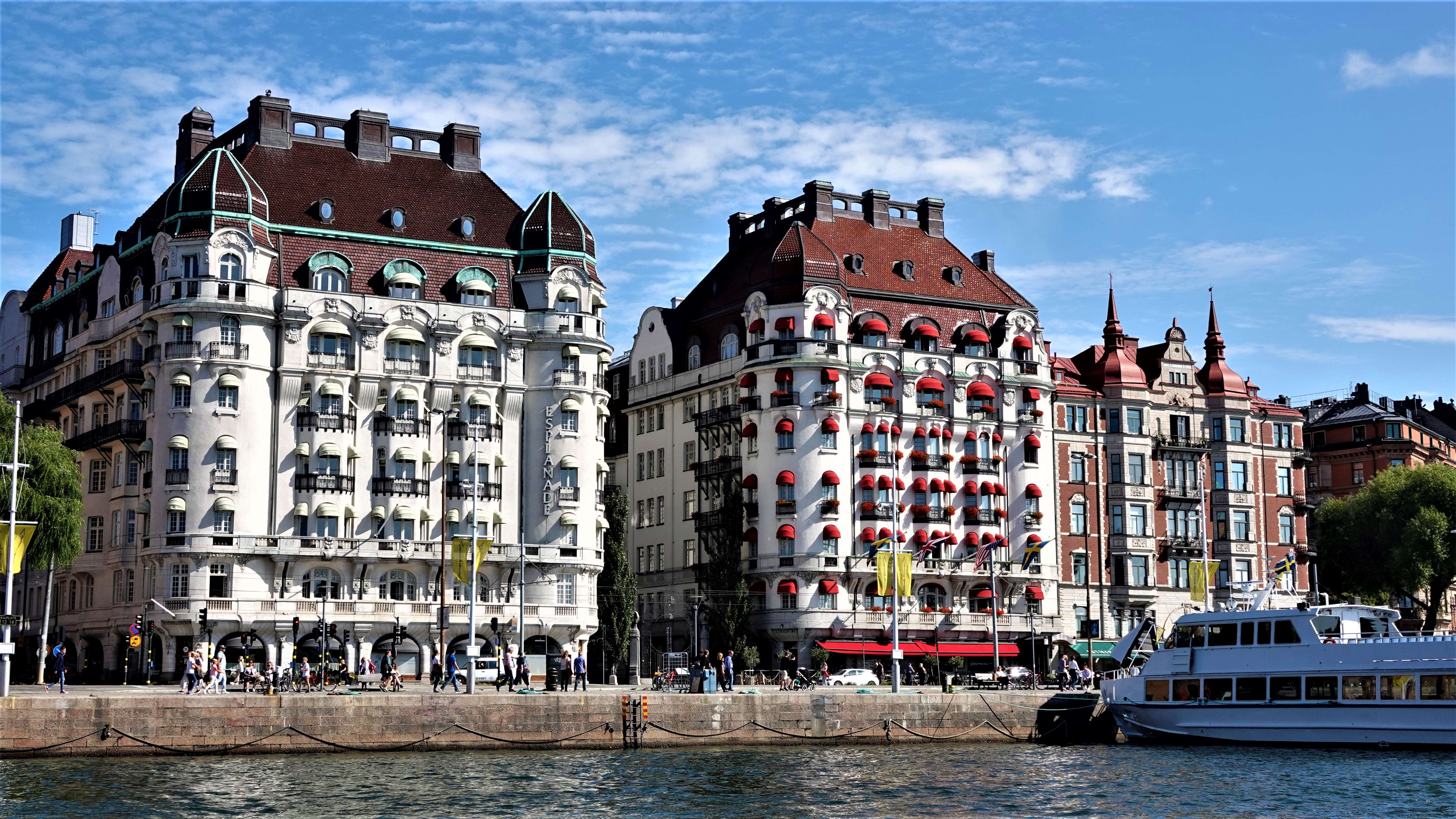 Nachdem wir unter Brücke „Skeppsholmsbron“ durchgefahren sind, haben wir freien Blick auf den „Strandvägen“ mit seinen wunderschönen Fassaden. Wer hier wohnt, so wie z.B. Björn Borg, hat es ökonomisch geschafft. So verspricht auch das traditionsreiche Hotel Diplomat, das im schmucken Jugendstil errichtet wurde, unvergessliche Tage und Nächte in Toplage.