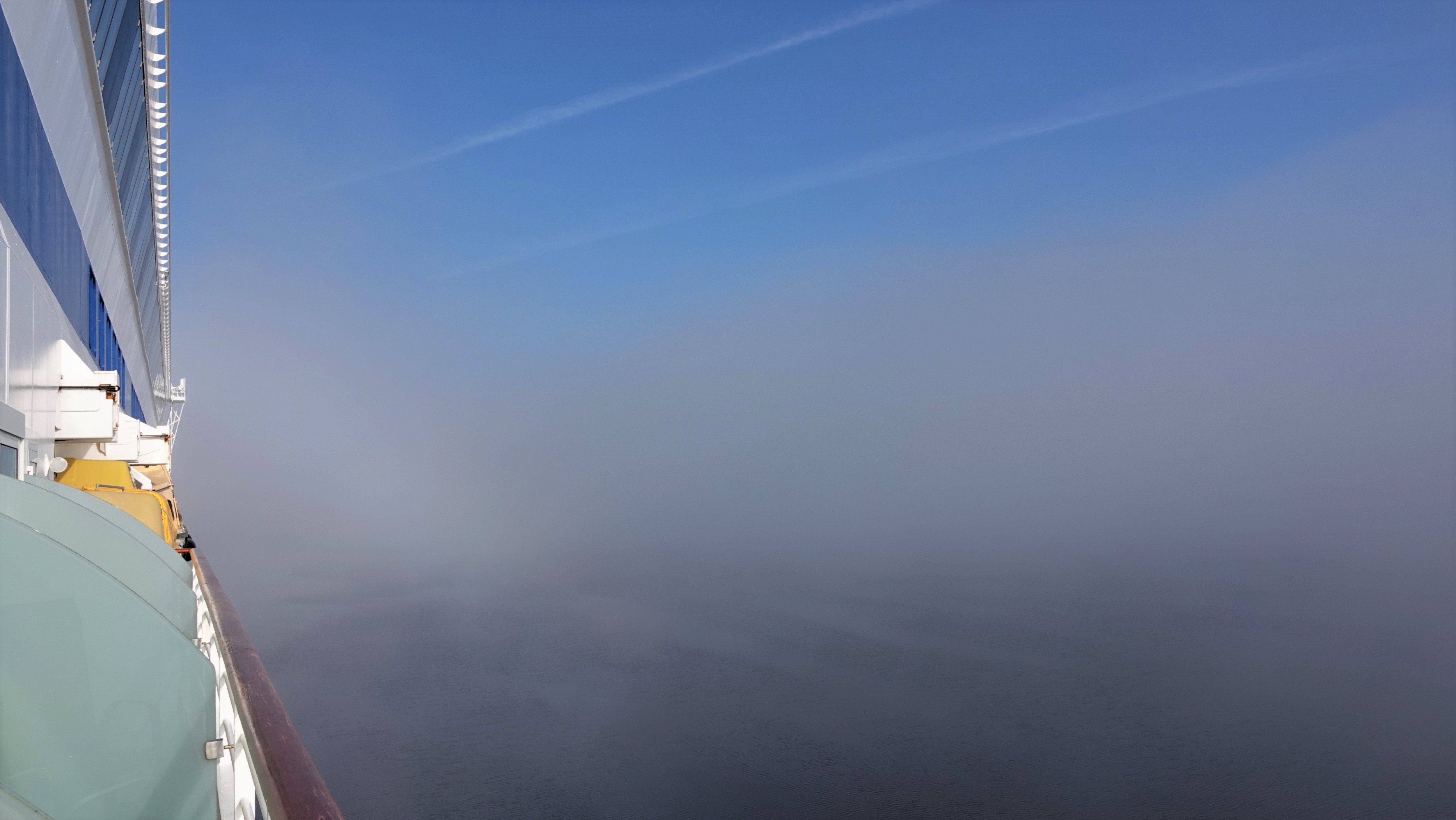 Unser heutiges Ziel ist Sundsvall, wenn denn der Kapitän den Weg findet. Zu sehen ist nämlich nichts. Wirklich nichts. Der Seenebel hat das Schiff komplett eingehüllt. Nur das ständige Tuten des Nebelhorns ist zu hören. Aber der Lotse hat uns trotz aller Widrigkeiten dann doch gefunden und bringt uns nun sicher durch die blickdichte Suppe zum Anleger. Ein Blick vom Balkon ist sinnlos. Erst nach unserem Frühstück, so kurz vor zehn, fängt der Nebel an, sich zu lichten.