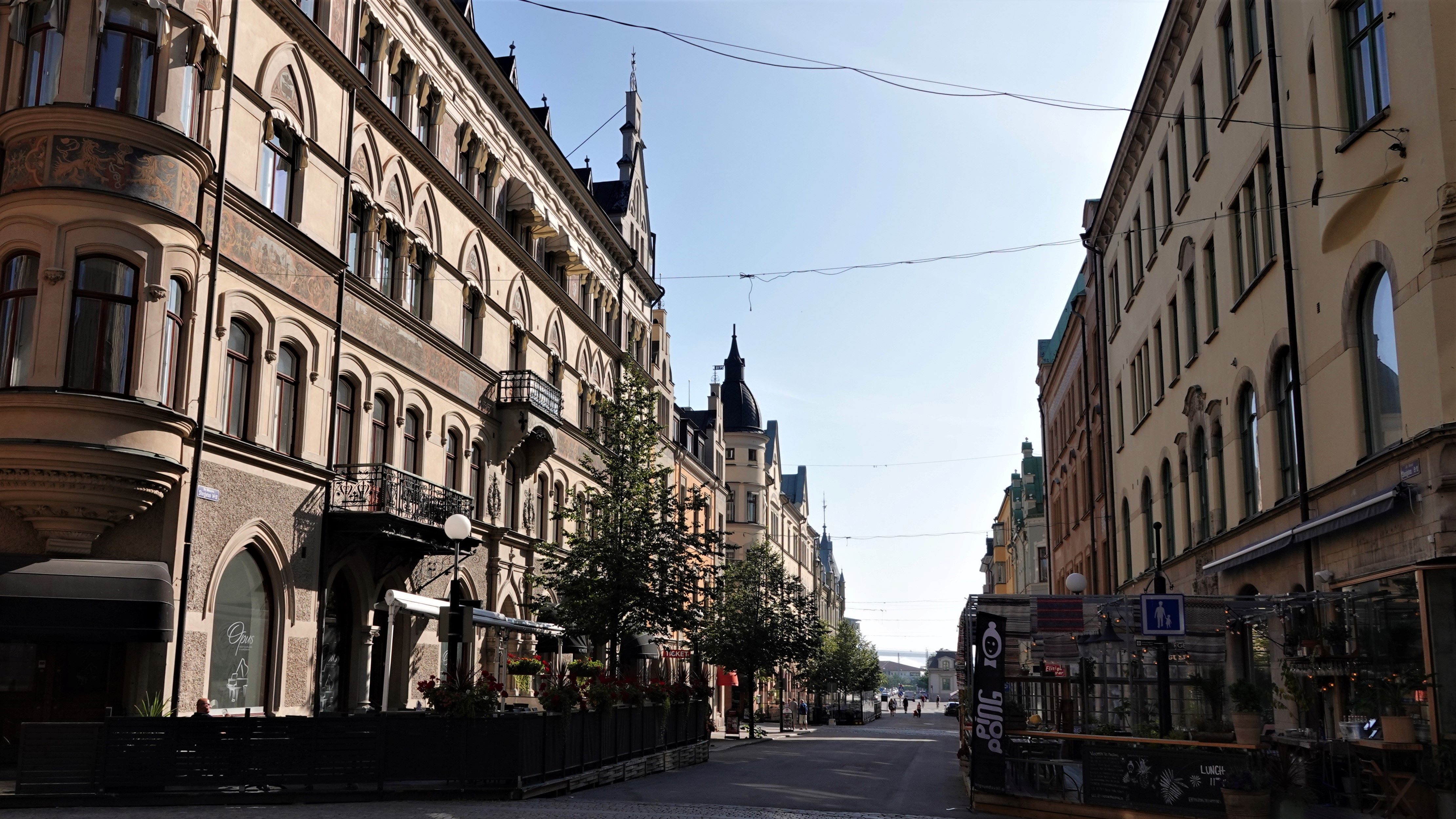 Festgemacht haben wir etwas außerhalb von Sundsvall. Da wir das Hafengebiet nicht selbständig verlassen dürfen, bringt uns ein kostenloser Shuttle der Gemeinde in die Stadt. Nachdem uns der Bus im Zentrum abgesetzt hat, laufen wir durch die wenig belebte „Storgatan“, die Hauptstraße Sundvalls, in Richtung Hafen.