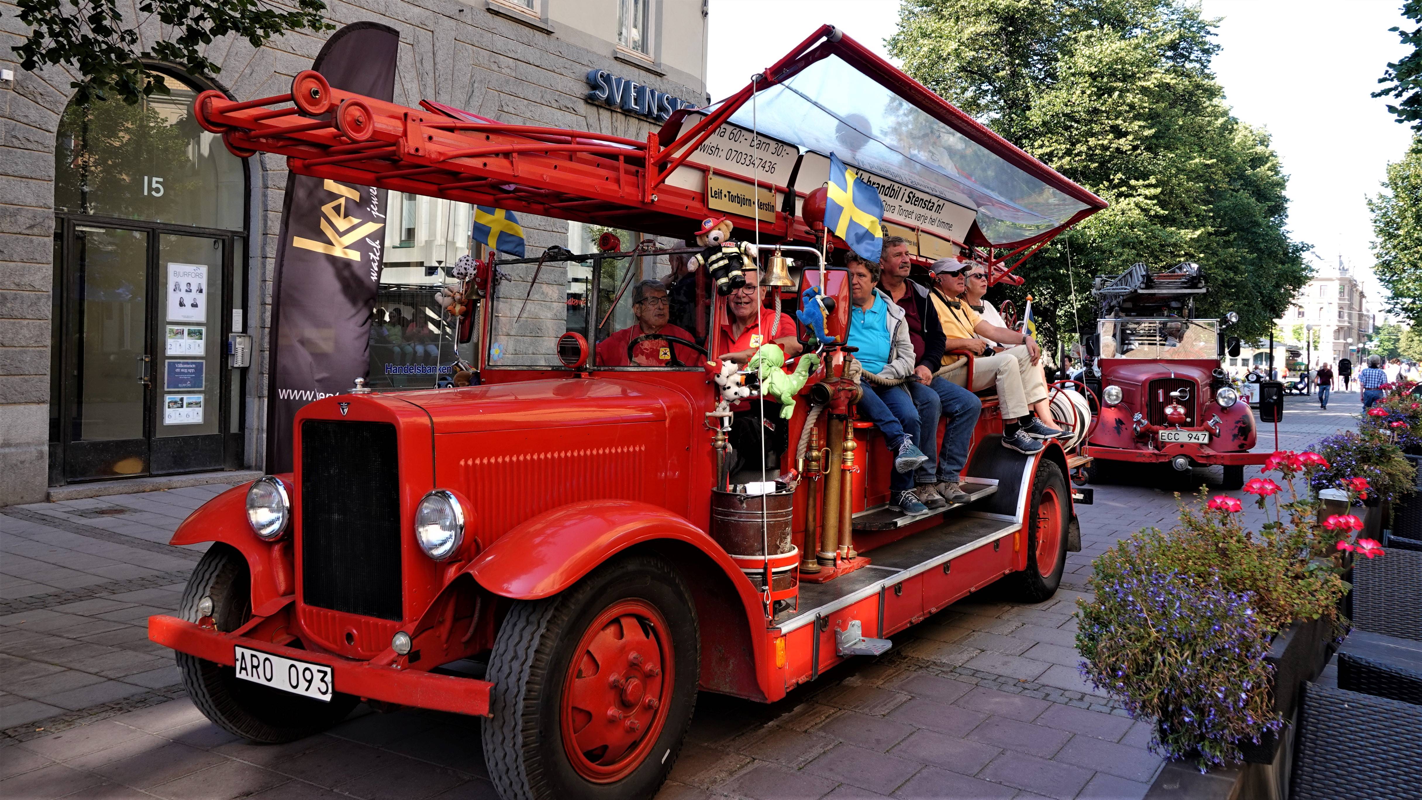 Eine Stadttour kann man mit den historischen Feuerwehrautos aus den 1930er Jahren machen.