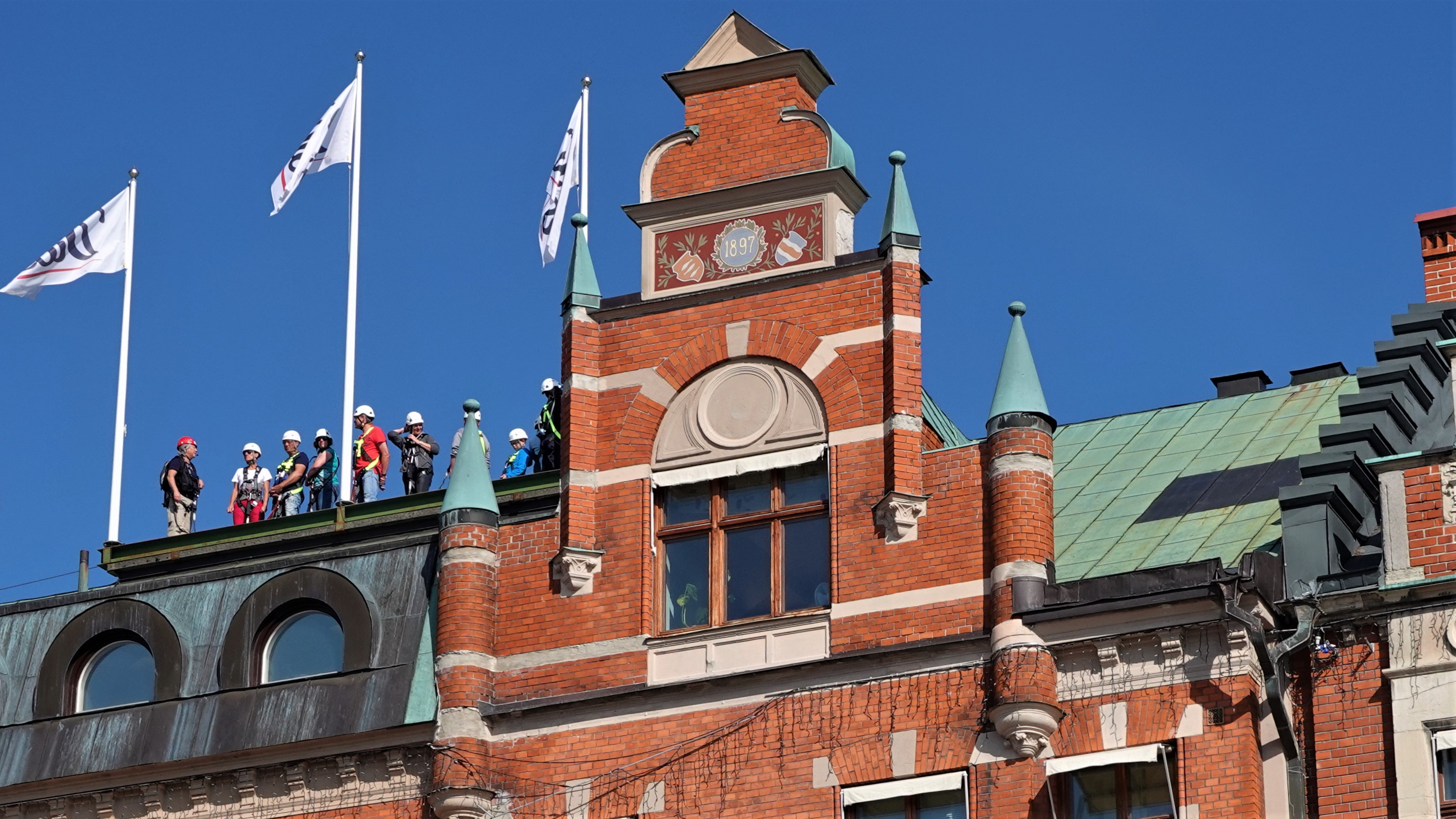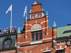Auf der anderen Seite der „Storgatan“ liegt noch ein schönes Gebäude aus dem Jahre 1897, mit dem man eigentlich Mitleid haben muss: AIDAausflügler steigen dem ehrwürdigen Bau aufs Dach.