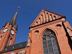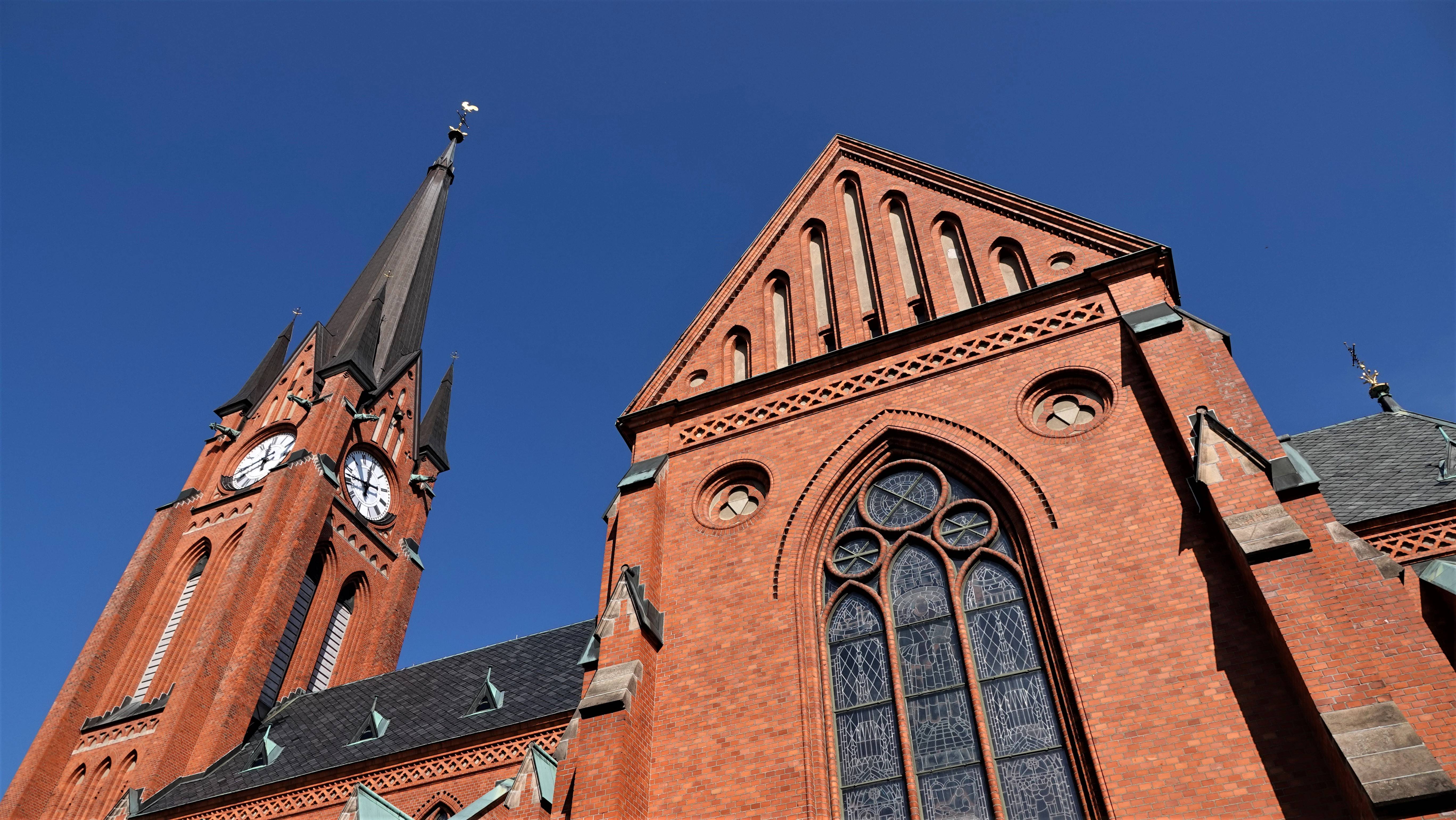 Auf einem kleinen Hügel liegt die Gustav Adolf Kirche.