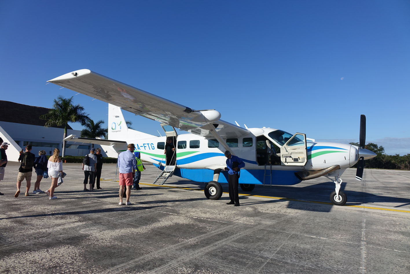 Dieser Ausflug war der absolute Wahnsinn, so etwas von hervorragend organisiert, das er seines Gleichen sucht. Nur 13 Passagiere der Norwegian Getaway hatten überhaupt die Möglichkeit für diesen Ausflug. Am Schiff wartete eine Mitarbeiterin der örtlichen Agentur auf uns. Zwei Taxis standen schon bereit, diese brachten uns zum Flughafen von Cozumel, dort wartete der nächste Mitarbeiter der Agentur und der Pilot. Nach einem kurzen Sicherheitscheck bestiegen wir das kleine Flugzeug.