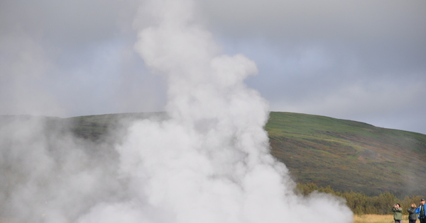 Bei den Geysiren bzw. Strokkur, unserem nächsten Stop ist der Himmel schon wieder bedeckt, aber egal wir wollen ja nicht Sonnenbaden sondern Geysire schauen.