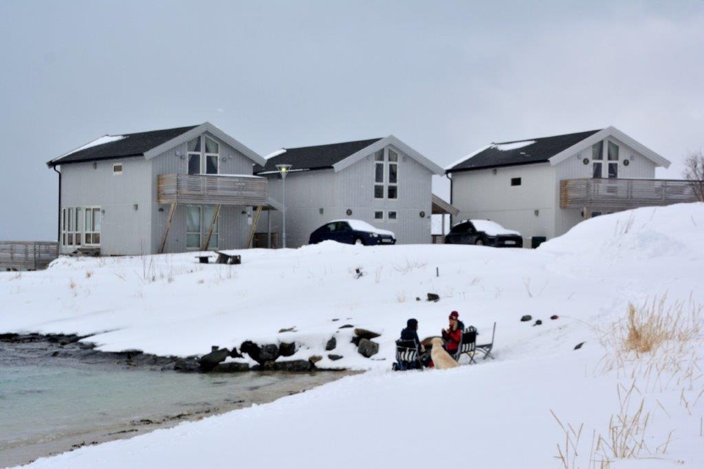 Hunger hatten die Großen und auch die Kleinen, nachdem sie extra für uns Schneemann und -hund erschaffen hatten. Schön, aber auch uns trieb der Hunger. Und zwar Richtung Hotel. Wir kämpften uns durch den Schnee und schauten immer wieder zwischen den Hütten auf die andere Seite der kleinen Bucht.