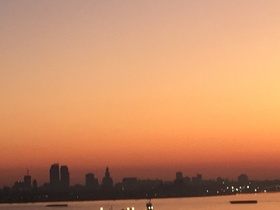 Mein Mutterherz schlägt erheblich höher, die lieben Kleinen allein in der großen, wirklich sehr großen fremden Stadt. Aber als ich mich erinnere, dass sie dem Kleinkindalter schön längst entwachsen sind und beide bereits zum 2ten Mal genullt haben, kann ich dann doch meine 1 - 2 Kaltgetränke an der Oceanbar bei diesen lauen Temperaturen und mit diesem Blick so richtig genießen.