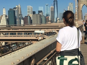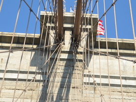 Vom Anleger, Manhatten Cruise Terminal Pier 90, immer geradeaus bis zur Station 50th S., am Schalterhäuschen Ticket für 4 Fahrten zum Preis von ca. 12 Dollar erwerben, abstempeln, in Linie C einsteigen und nach einigen Stationen an der High St. in Downtown Brooklyn wieder aussteigen. Geschafft. Nach wenigen Metern liegt die Brooklyn Bridge vor uns. Toll!