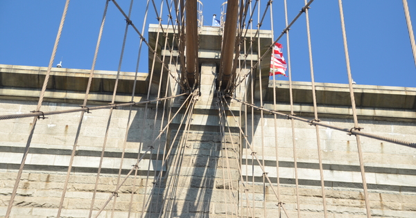 Vom Anleger, Manhatten Cruise Terminal Pier 90, immer geradeaus bis zur Station 50th S., am Schalterhäuschen Ticket für 4 Fahrten zum Preis von ca. 12 Dollar erwerben, abstempeln, in Linie C einsteigen und nach einigen Stationen an der High St. in Downtown Brooklyn wieder aussteigen. Geschafft. Nach wenigen Metern liegt die Brooklyn Bridge vor uns. Toll!