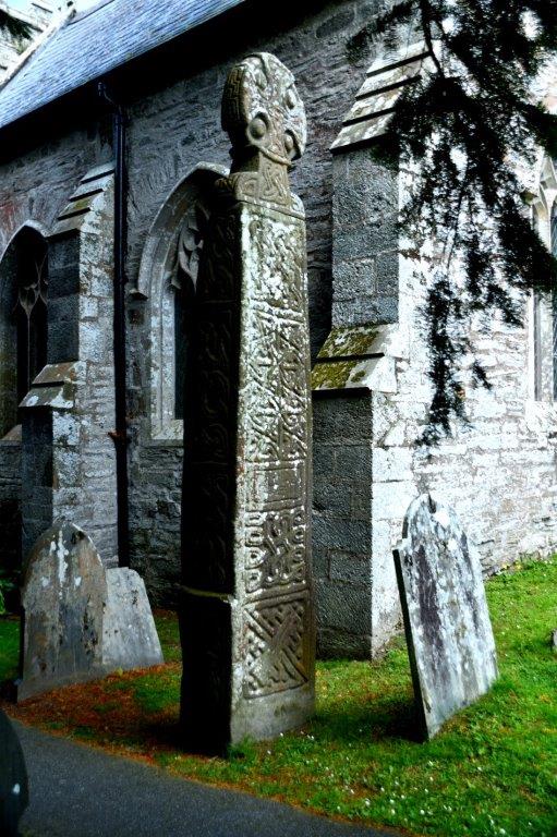 Bislang hatten wir zwei interessante Plätze besichtigt. Wir waren gespannt auf den nächsten. Er befand sich in der Nähe des Dorfes Nevern. Nach dem Verlassen unseres Autos mussten wir über einen von Eiben und Zypressen bewachsenen Kirchhof. Alte Grabsteine links und rechts des Weges und dann vor uns die St Brynach’s Church. Auf diesem Platz sollte der irische Heilige Brynach im 5. Jahrhundert eine Kapelle erbaut haben, die nach der Übernahme der Insel durch die Normannen im 12. Jahrhundert durch ein größeres Gotteshaus ersetzt wurde.