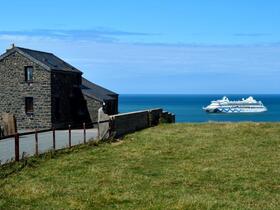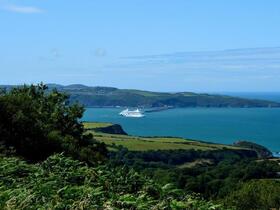 Damit nicht genug. Am Rande der Fishguard Bay stand ein Ferienhaus mit einer Parkmöglichkeit. Letztere gehörte uns. Ein Ausblick über die Bay und auf unsere AIDAaura … ohne weiteren Kommentar …
