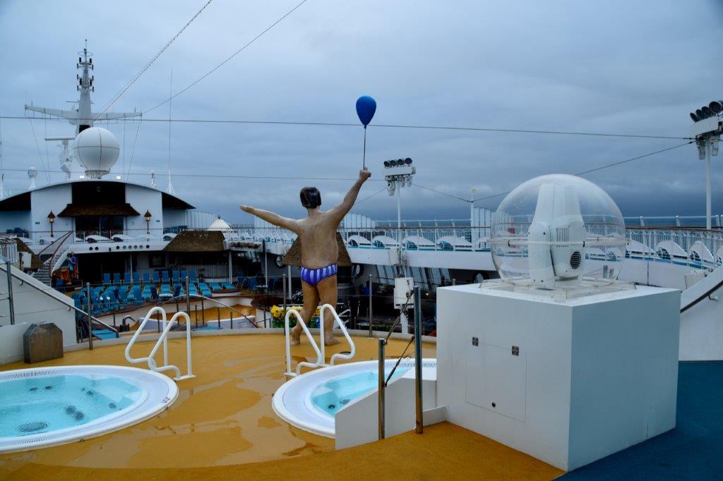 Die Uhrzeit verwirrte. War es 8 Uhr, war es 7 Uhr, als ich vor dem Früher-Vogel-Bottich stand? Egal – es war wohl eher die spätere Zeit. Irgendwann am frühen Morgen wurde uns eine Stunde geklaut, die man uns in der Nacht zum ersten Seetag geschenkt hatte. Ausgleich …