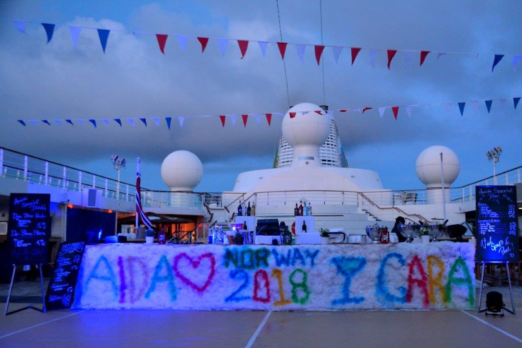 Vor dem Sprung in die Koje bewunderten wir die noch immer existente Eisbar auf dem Pooldeck