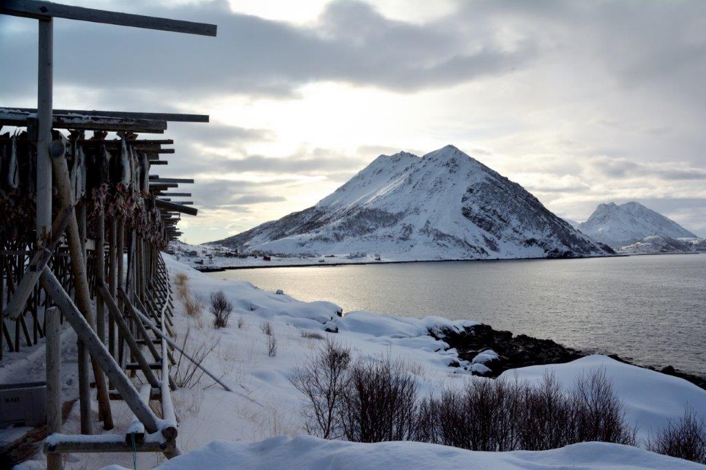 In ihre Richtung stapften wir. Durch hohen Schnee. Und schauten auf Hinnøya. Ganz nett sah es auf der anderen Seite des Fjords aus.