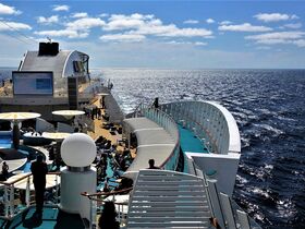 Zurück auf dem Schiff gibt‘s im „California“ ein Stück Pizza und an der „Ocean Bar“ ein Bier. Danach Siesta und Tagebuchschreiben.