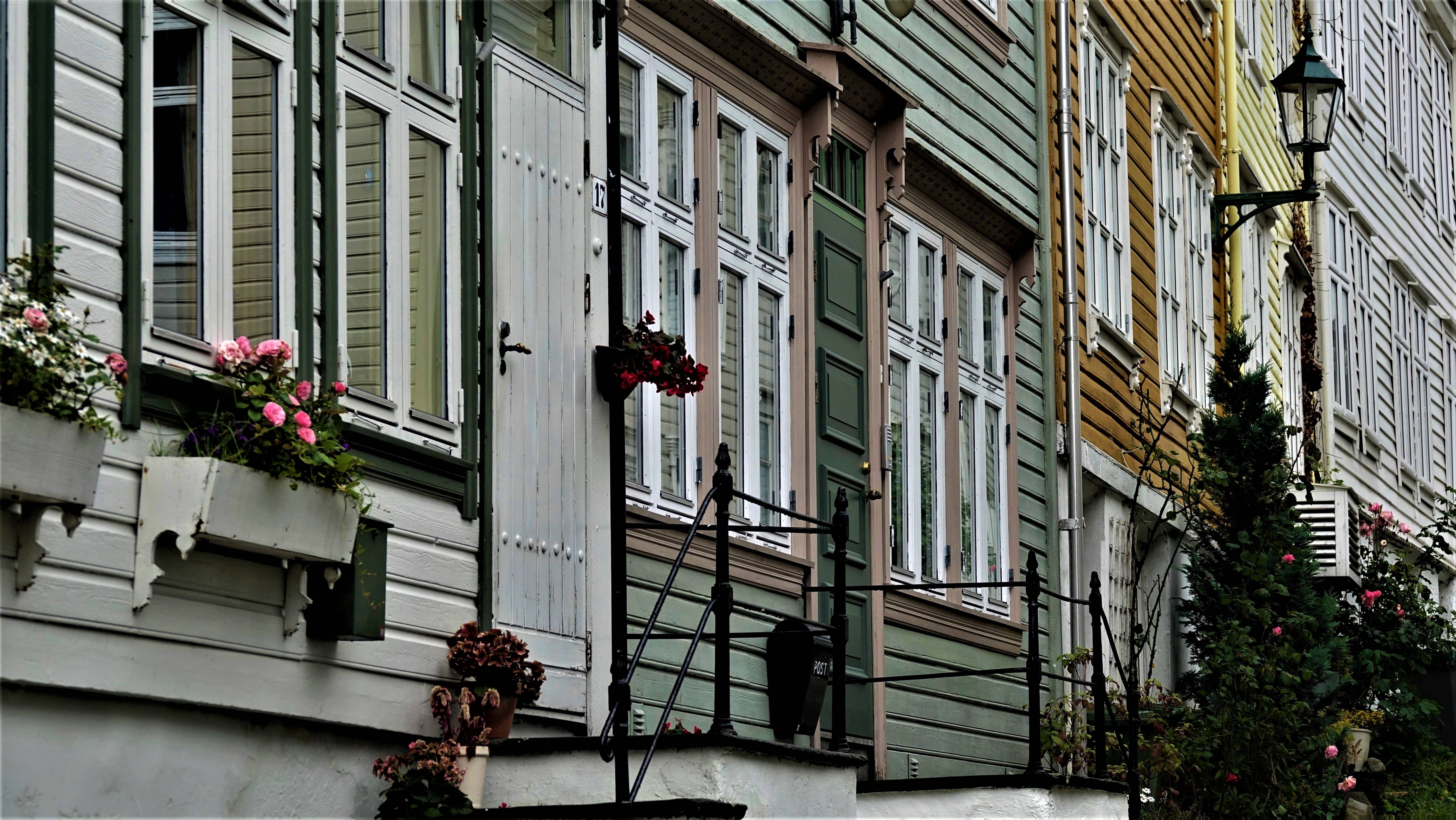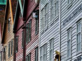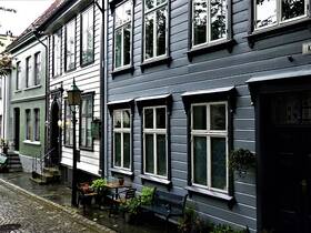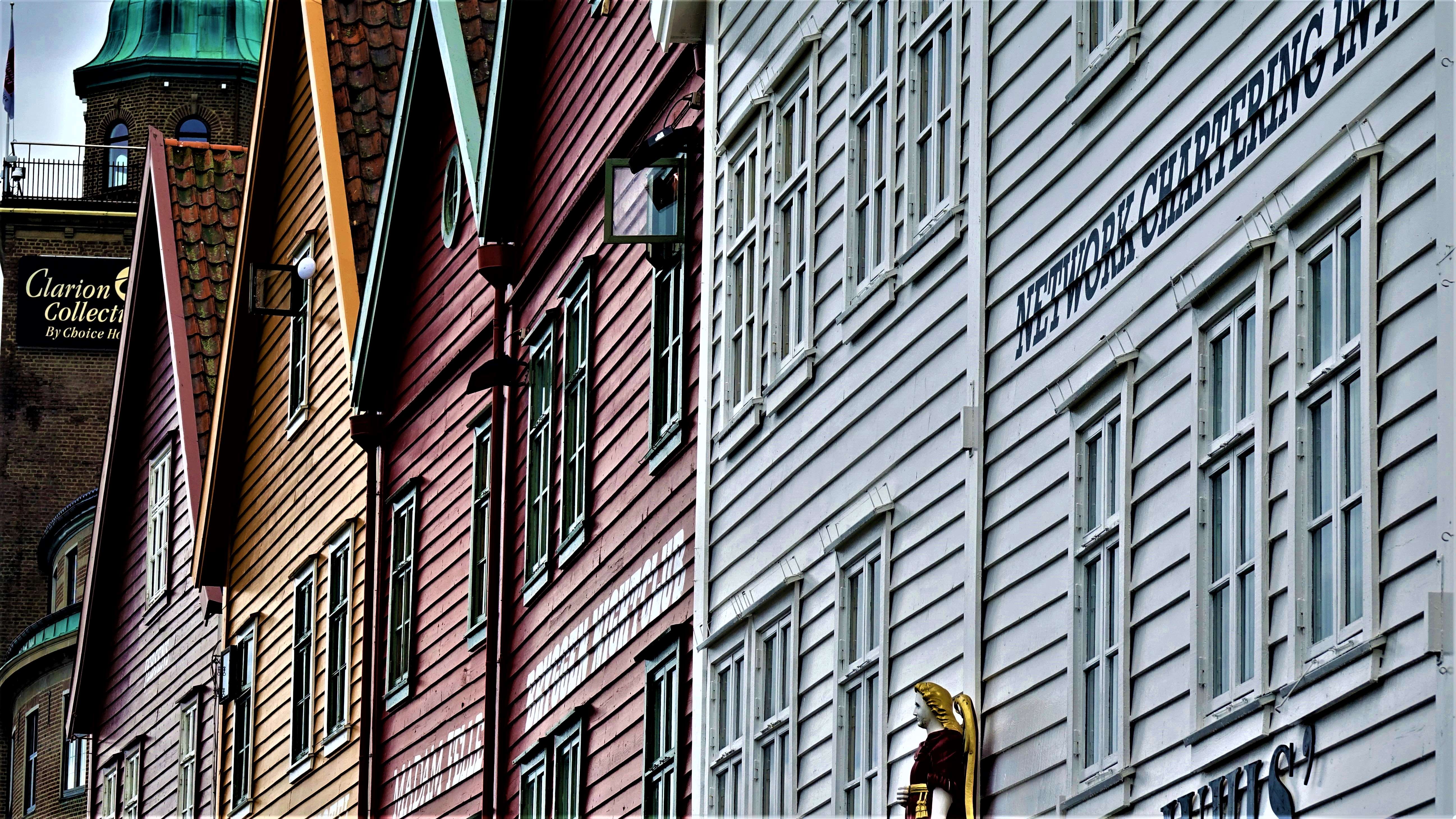 Da wir schon oft in Bergen waren, fangen wir heute mit der zweiten Reihe an, also vom Hafen aus gesehen, hinter Bryggen. Dort befindet sich die „Mariakirken“ und in der kleinen Gasse „Kroken“ stehen sehr hübsche Holzhäuser.