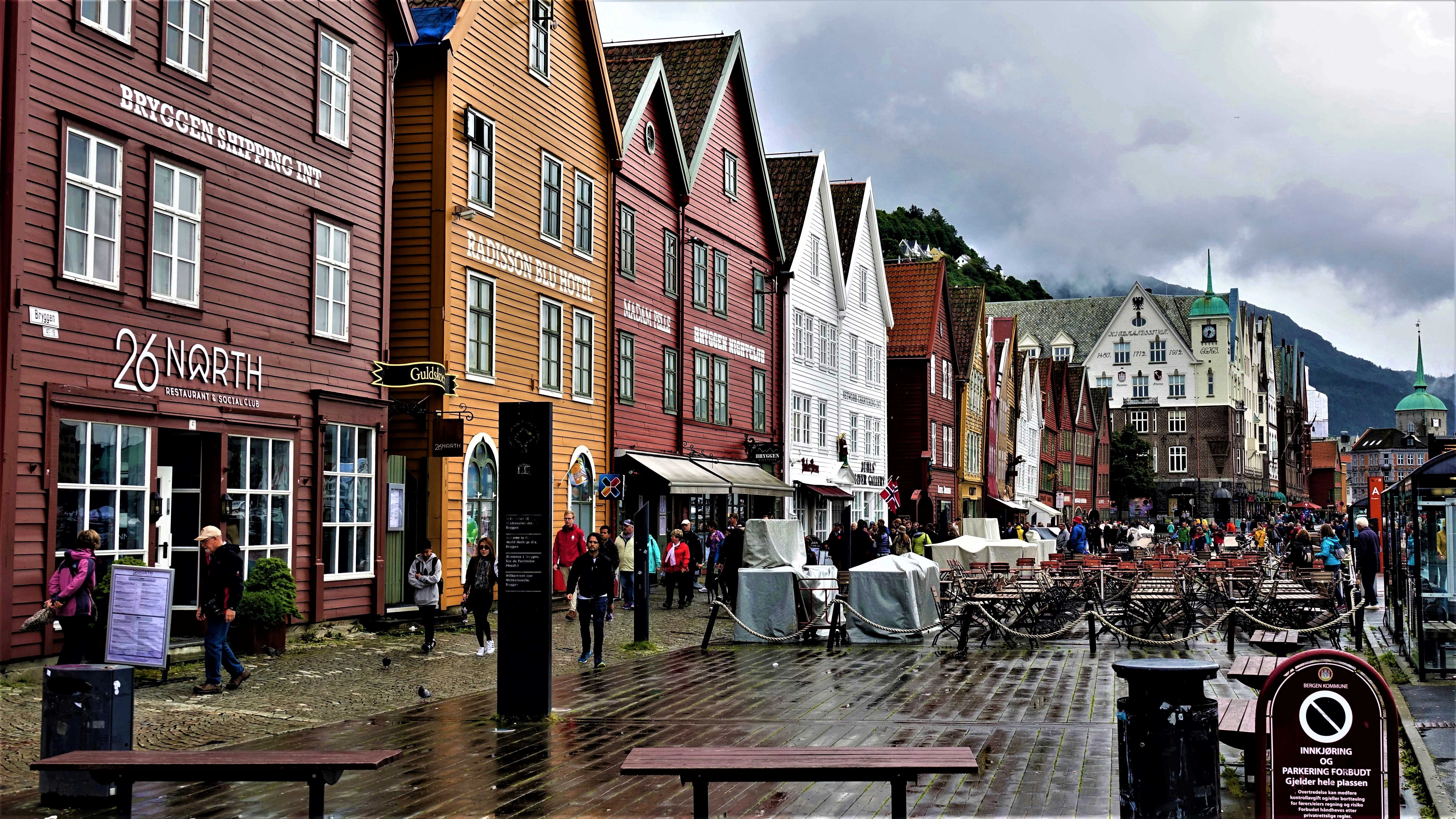 So streifen wir wohlgelaunt durch Øvregaten und kommen an der Talstation der Fløibane vorbei. Es ist wirklich das erste Mal, dass wir dort keine endlosen Menschenschlangen sehen. Woran das wohl liegt? Ich glaube, Petrus ist nicht ganz schuldlos.