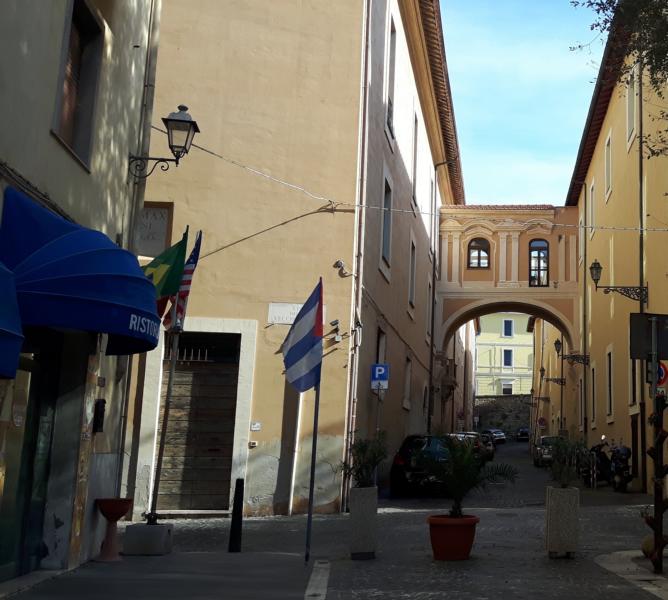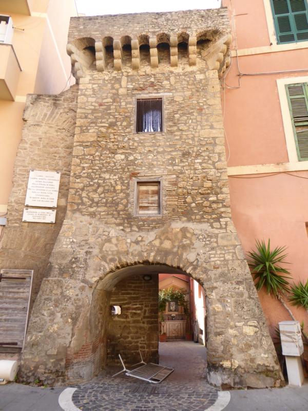 Im historischen Zentrum der Stadt stehen wir auf der „Piazza Leandro“. Die großen Tore verbinden zwei Plätze miteinander. Die Gedenktafel am Tor kann ich leider nicht entziffern … aber da steht irgendwas von einer neuen Stadt und Civitavecchia...