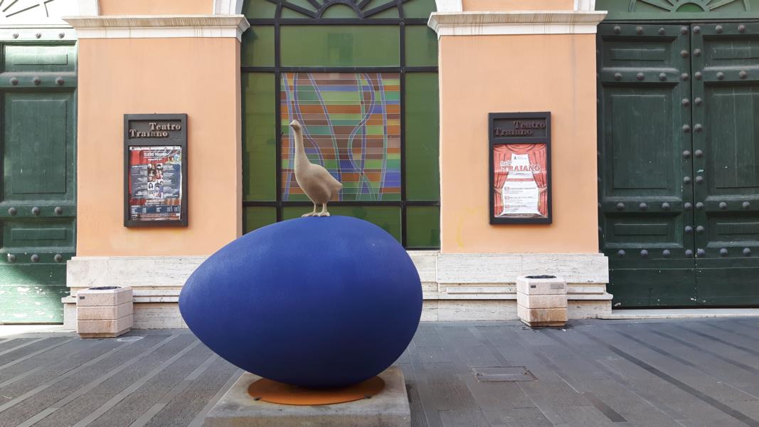 Auch dieses Gebäude, das Teatro Traivano war zum Teil zerstört und wurde wieder etwas hergerichtet. War dann lange Zeit ein Kino und danach zwei Jahrzehnte geschlossen. Die aufwendigen Restaurierungsarbeiten waren im Jahr 1999 beendet und seit der Zeit wird es wieder als Theater genutzt. Der breite Platz davor lädt uns ein, Platz zu nehmen. Ein kleiner Espresso und wir beobachten die frechen Tauben, die sich über die Reste auf dem Nachbartisch hermachen. Als die Bedienung kommt und sie fort scheucht, suchen sich schnell einen neuen Futterplatz. Verfressenes Volks sind die Tauben schon oder? Die Straßen sind nicht übervölkert, Nachsaison und viele AIDAfahrer sind ja nach Rom gefahren. Es gibt für mich jede Menge zu schauen und zu fotografieren.