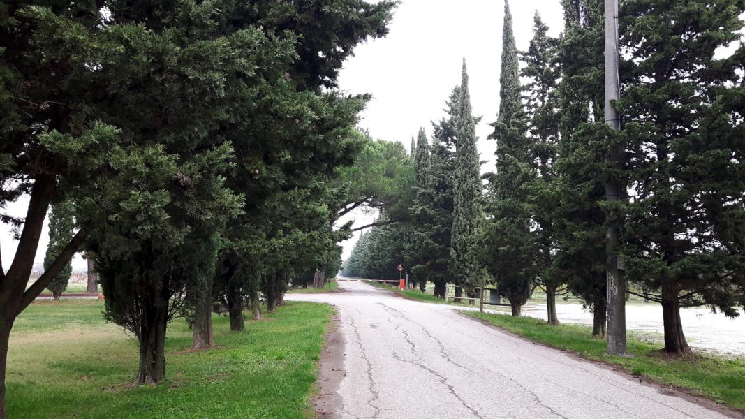 Als wir an einer Schirmpinie vorbeikommen, zeigt er auf sie. „Da werden die Pinienkerne aus den Zapfen genommen und zum Beispiel für Pesto verwendet!“ Lecker, ich denke gleich an Spaghetti mit einem Basilikumpesto und einem kräftigen Parmesan. Es geht vorbei an einem Stück Land, das vorher mit Weinstöcken bepflanzt war. Die Reben können viele Jahre Trauben tragen, aber irgendwann sind sie zu alt (ca. 30-40 Jahre) und dann wird der Weinberg (obwohl es hier ja flach ist) umgelegt. Nach einer Zeit des Brachliegens werden junge Reben gesetzt und der Kreislauf beginnt von vorne. Wachsen, beschneiden, Traubenlese und so weiter.