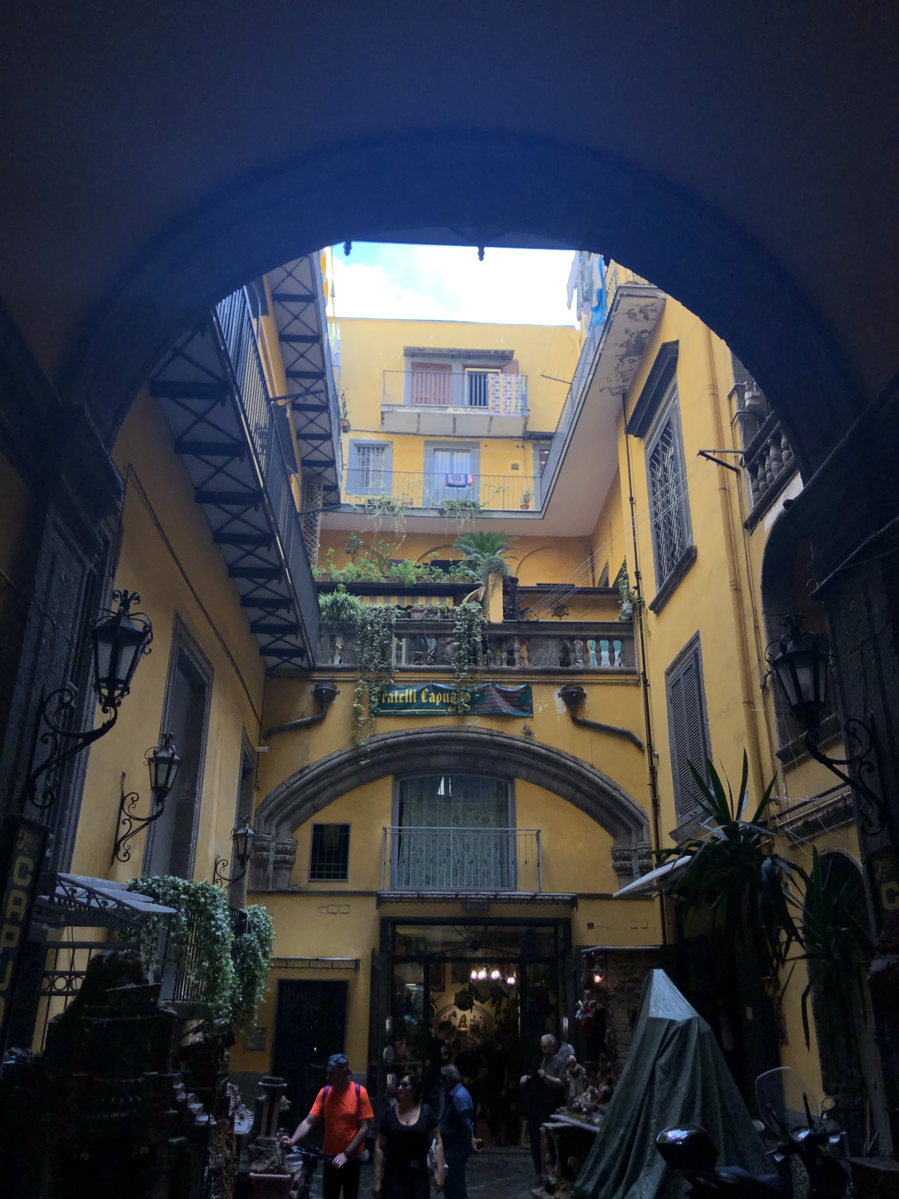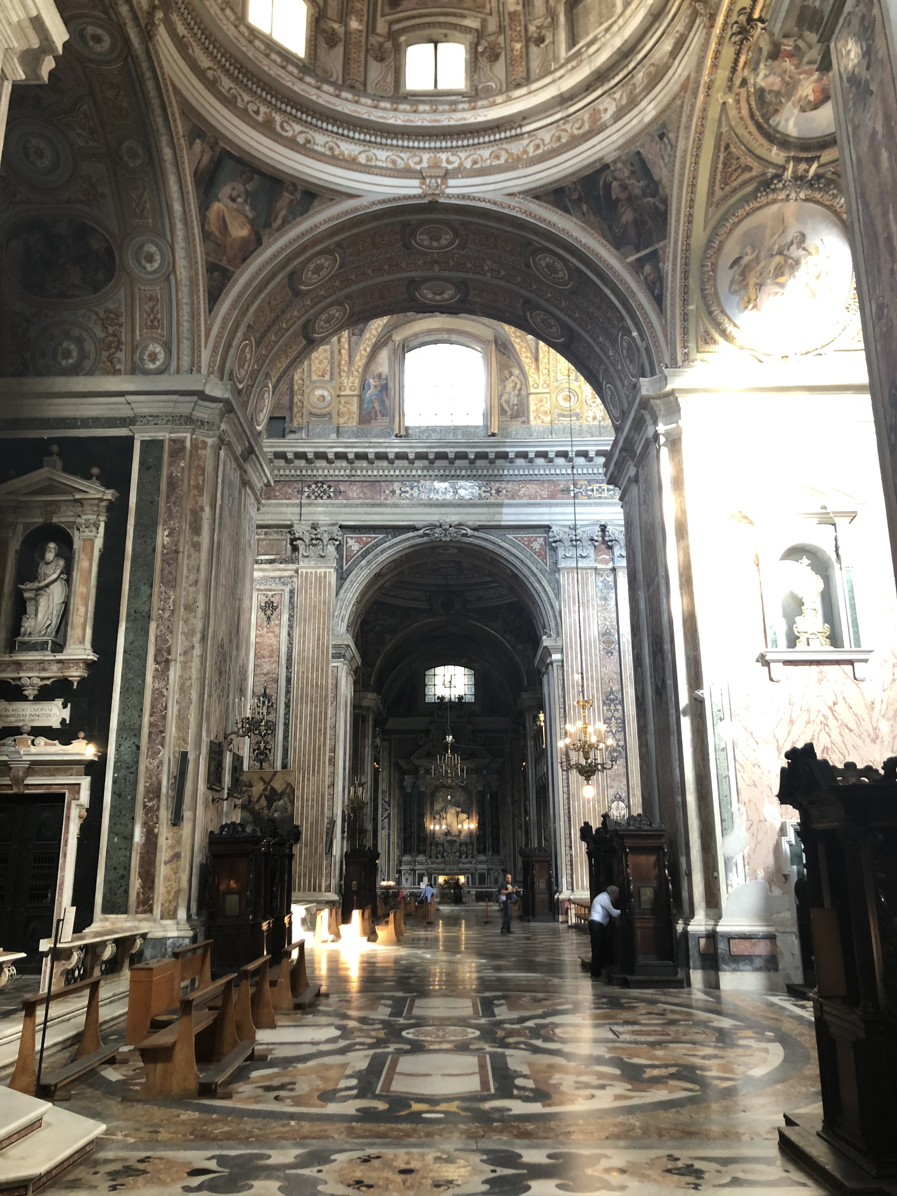 Dort befindet sich auch die Kirche Gesu Nuovo, welche mit Ihrer aus dunklen Diamantquadern bestehenden Außenwand nicht direkt als Kirche zu erkennen ist. Der Innenraum ist jedoch sehr sehenswert.
