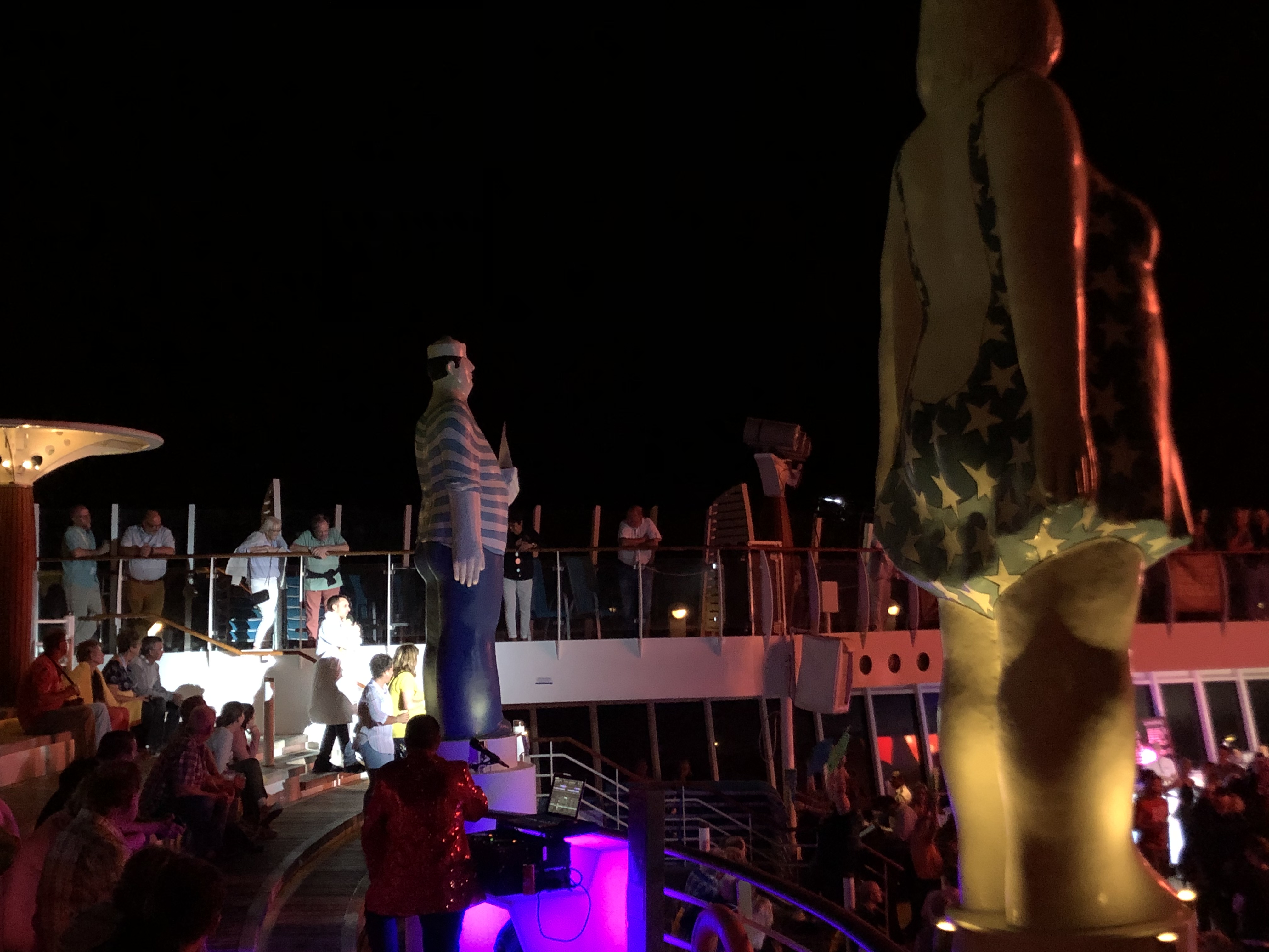 Da das Wetter erneut richtig gut ist, findet um 21:15 die „Ich find´ Schlager toll!“ -Poolparty mit DJ Tony Tornado, inklusive Performance des Schlagers „Samstag Nacht“ von Howard Carpendale durch unseren Entertainment-Manager Niels, statt. Während Dominik Meisterfeld 2018 auf AIDAblu noch Playback gesungen hat, traut sich Niels den Song live zu und macht seine Sache gar nicht schlecht... ![]()