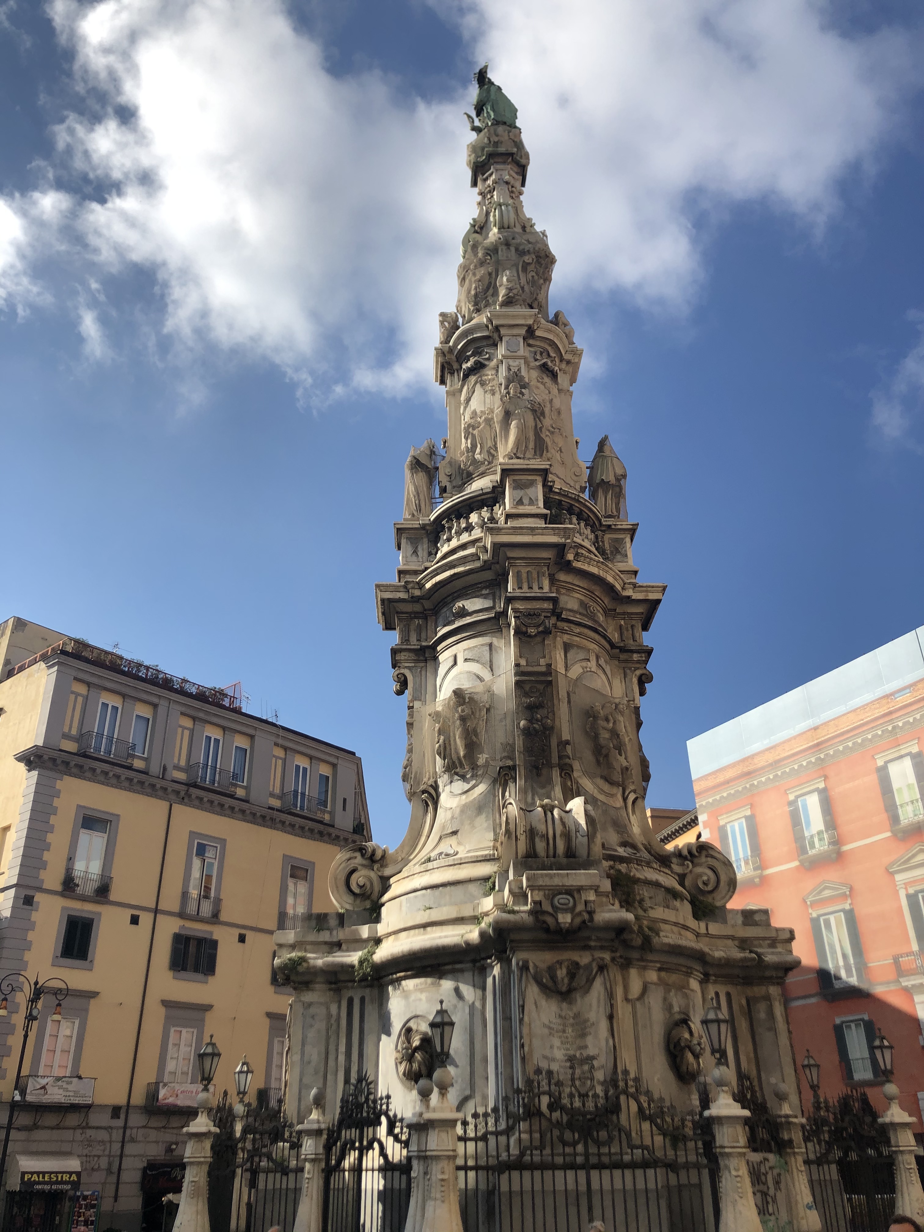 Auf höhe der Basilica dello Spirito Santo verlassen wir die Via Toledo und biegen rechts in eine kleine Gasse ab und kommen direkt auf den Obelisque de I‘Immacolata auf der Piazza Gesu Nuovo zu.