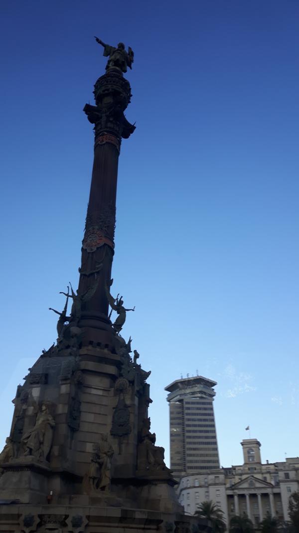 Ich bin sehr gespannt, was ich wiedererkennen werde auf der Tour. Im Bus gegrüßt uns Carlos und er spricht ein einwandfreies Deutsch. Er hat eine Zeit in Deutschland gelebt und so wird es keine Schwierigkeit sein, seinen Ausführungen zu folgen. Der Bus fährt vom Hafen aus in Richtung Stadt. Barcelona ist neben den vielen Kurzurlaubern auch ein beliebtes Ziel von Kreuzfahrern, denn mit uns liegen noch ein paar Schiffe im Hafen. Erste interessante Sehenswürdigkeit ist das unübersehbare Denkmal, welches Christoph Kolumbus darstellt.