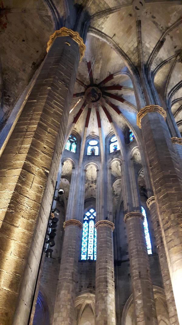 Angekommen an einem der Wahrzeichens Barcelonas, stehen wir vor der Kirche Santa Maria del Mar. Die gewaltige Front mit den beiden Türmen beherrscht den ganzen Platz. In 55jähriger Bauzeit wurde die Kirche im Jahr 1383 geweiht.