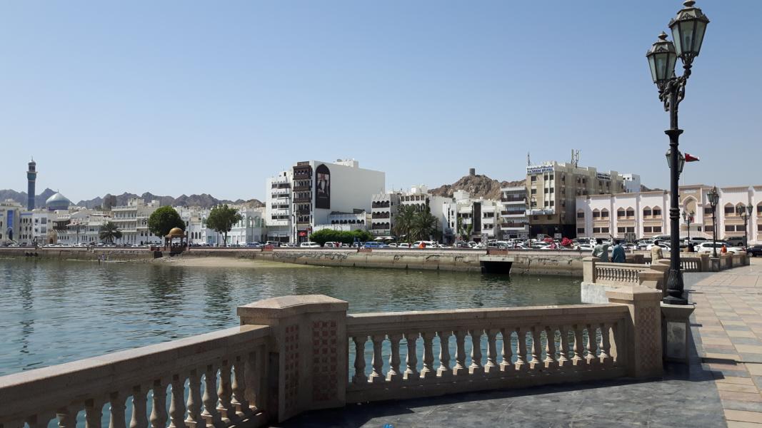 Muttrah, ein Stadtteil von Muscat ist nach wie vor der schönste Hafen im Orient den ich bisher kennen gelernt habe. Er liegt idyllisch in einer kleinen Bucht, eingerahmt von Bergen und weit und breit keine Bettenburg oder Hochhäuser zu sehen. Dieser Stadtteil ist eine alte Hafenstadt mit verwinkelten Gassen, einem bunten Souk und einer Promenade entlang der Wasserlinie. Von Hafen aus ist man mit ein paar Schritten schon in dem kleinen historischen Stadtteil.