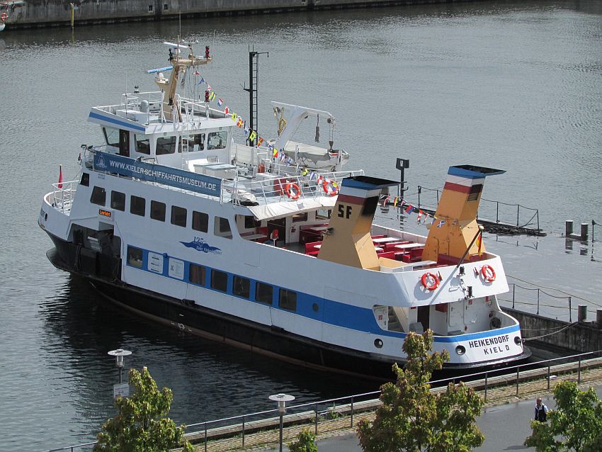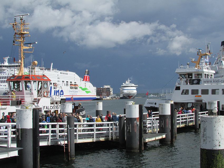 ... breitet sich über dem Bahnhof schon wieder eine große blaue Lücke aus, während der kleine Schlepper "Falckenstein" eine große Menge Menschen ausspuckt und die "Strande" wiederum ebenso viele aufnimmt. Die Fördedampfer sind hier nicht nur für Touristen eine gute Gelegenheit, um auf gemütliche Art Kiels Wasserarm bis zum Meer erleben und genießen zu können; sie dienen auch als Nahverkehrsmittel für die Einheimischen.